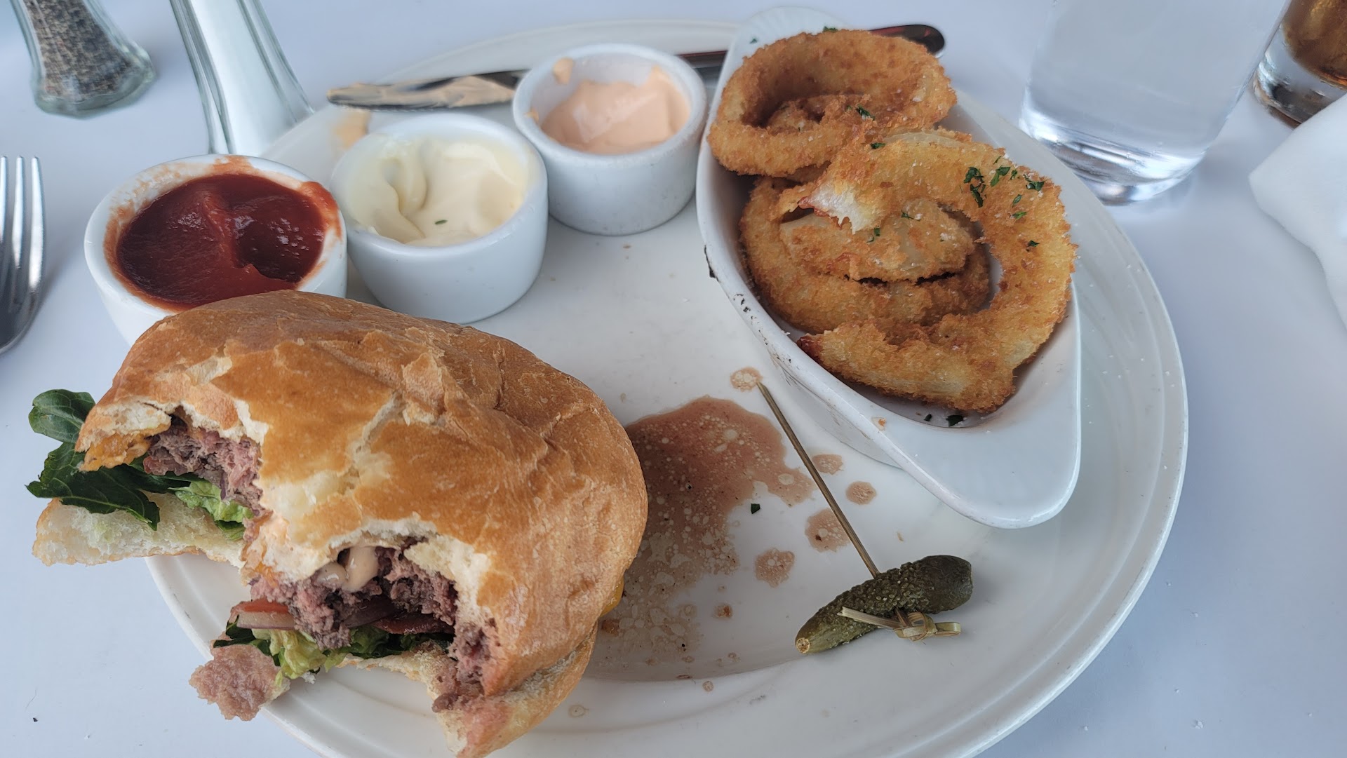 The food was a 4.5. The view was good - we could watch people on Pier 7 and look out at Treasure Island and the Bay Bridge.