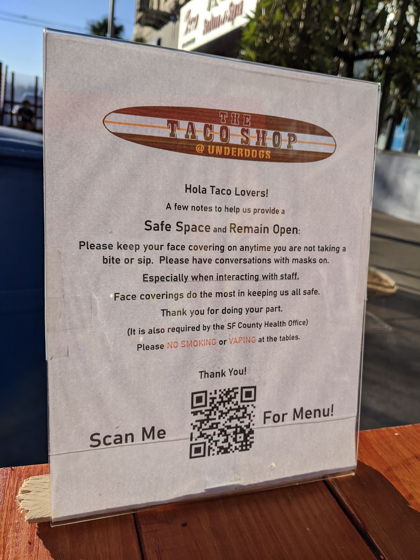 So glad to report a brilliantly pleasant experience. This review is bought to you during the fabulous 2020 COVID experience (my attempt at Sarcasm). So of course, the main concern regarding Dining in is addressed...Outdoor seating. The interior was closed to the public, however one could go in and place an order to go or use the restroom. There was a decent amount of outdoor seating, we were fortunate enough to grab a long table. The staff was lovely, checked up on us frequently and cheerfully answered our questions. We also witnessed them cleaning up between...errr sanitizing the seating area between patrons.