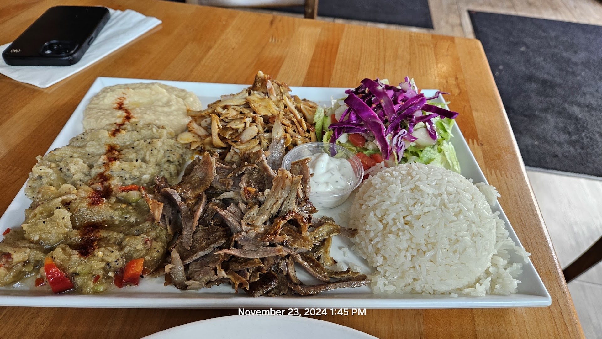 I’m so happy I came by, the prices are very fair, the restaurant is clean, and the owner is super nice. I came here twice during the same week to try more items. The combo gyro on a pita, was exceptional, you can tell that the meat is high quality and cooked perfectly. The second time I got the Mediterranean combo place which was unreal (lamb, chicken shish kabob, kofte, and both gyro meats), with rice, salad and hummus. Literally every item tastes good, highly recommend this if you’re hungry.