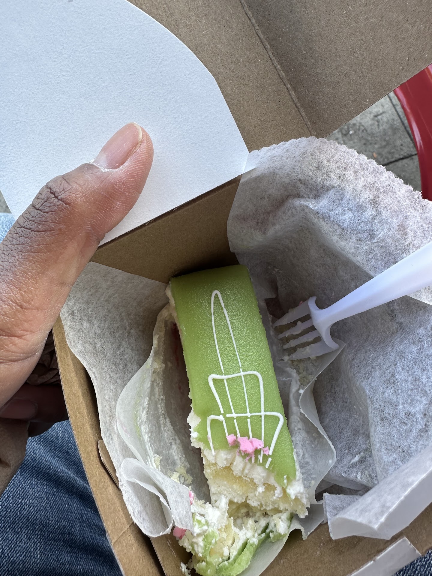 Soooo Iām visiting from NC, just walking around town and had a major sweet tooth and went to google and typed ābakery near meā. This was not one of the bakeries that popped up. Google initially showed me a bakery maybe 2 blocks away and thatās where I went first. They looked understaffed, so after a few mins of growing inpatient in line, I decided to leave and look elsewhere. Plus, the vibes just werenāt there. Srry for the lengthy intro but I just gotta share how good God is lol. Anyways, I went back onto Google and this place showed that it was a short walk. Immediately once I walked in, the guy and girl behind the counter acknowledged my presence & smiled while letting me know they see me! All of the treats looked freshly made and the shop was clean. I almost chose my go-to treat, a strawberry shortcake cake but thankfully I decided to listen to those reviews that raved about the princess cake. Being an outta-towner I never knew princess cakes existed, and now Iām obsessed. Bcus what do u mean I went my entire life without knowing anything about this deliciousness??? Holy crap! God is so good bcus that other shop didnāt offer princesses so I wouldāve totally missed out! It took everything in me not to order several more slices to take back home. Thank u to the bakers and thank u to the reviewers for putting me on! Yall will be seeing me again! PS had to take a bite before...