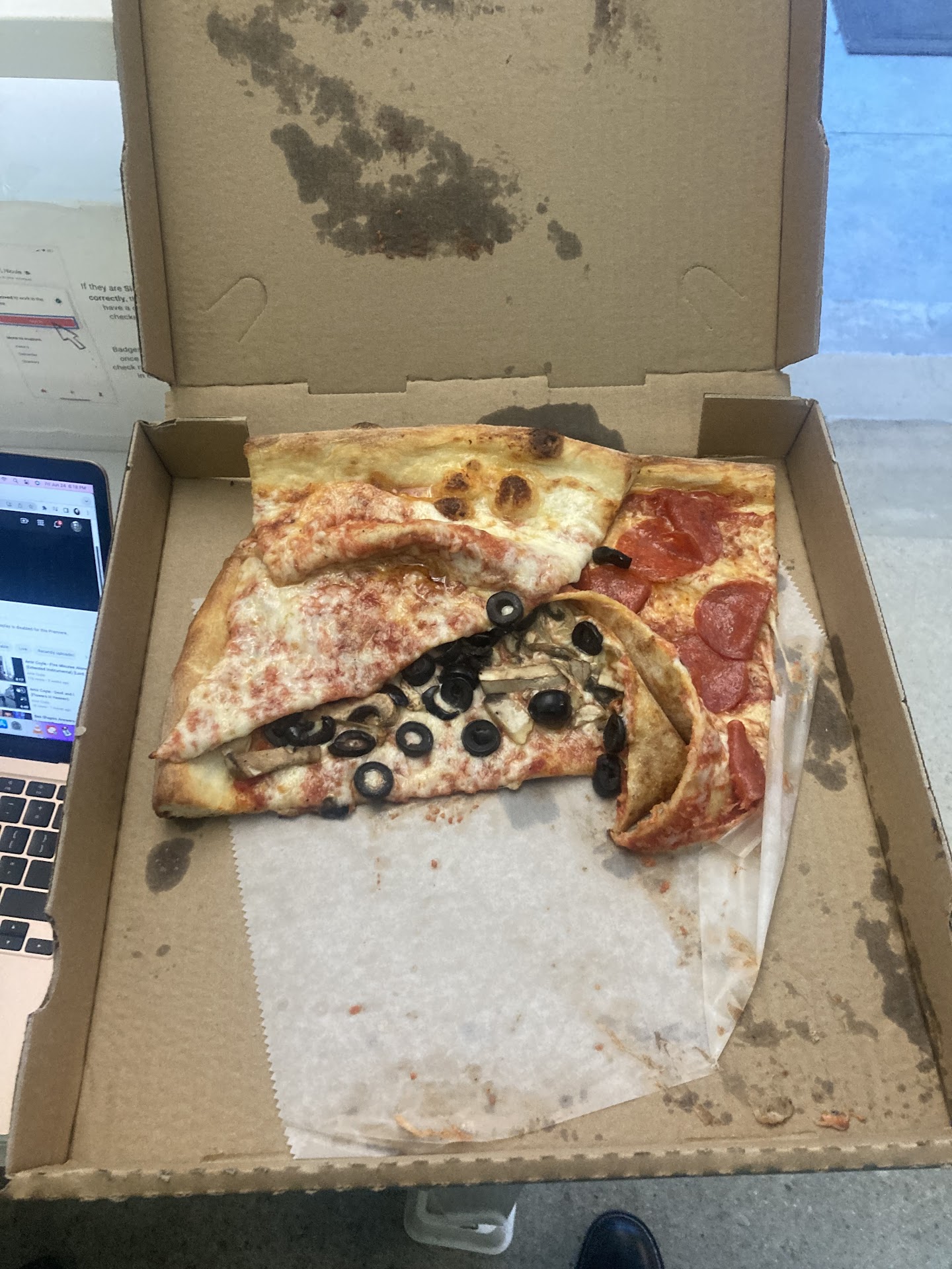You might ask why I did not provide an additional photograph of the slices unfolded and straightened out. Trust me. It was not a pretty sight when relieved of the strange UFC/ WWE submission hold the Door Dash driver decided to put on these poor innocent and defenseless New York Style slices.