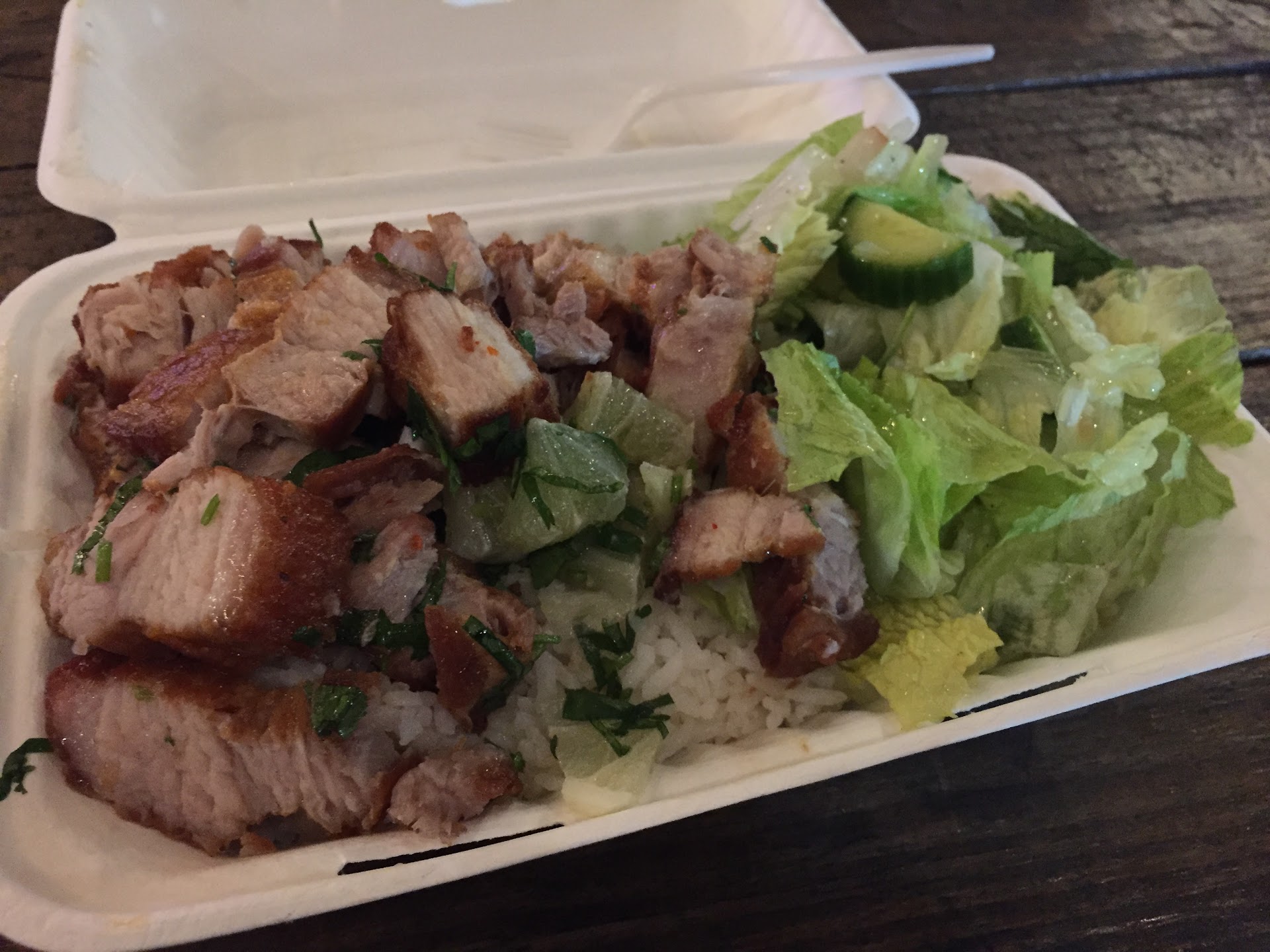 Pork Belly and Lime Bowl consisted of crispy roasted pork belly, cilantro, sliced lime, Thai chili with Thai-Vietnamese fish sauce over rice and it came with a green salad in oil and vinegar. The pork belly was moist with each piece having some crispy skin on it. Good flavor especially the citrusy taste from the lime pulp mixed in.