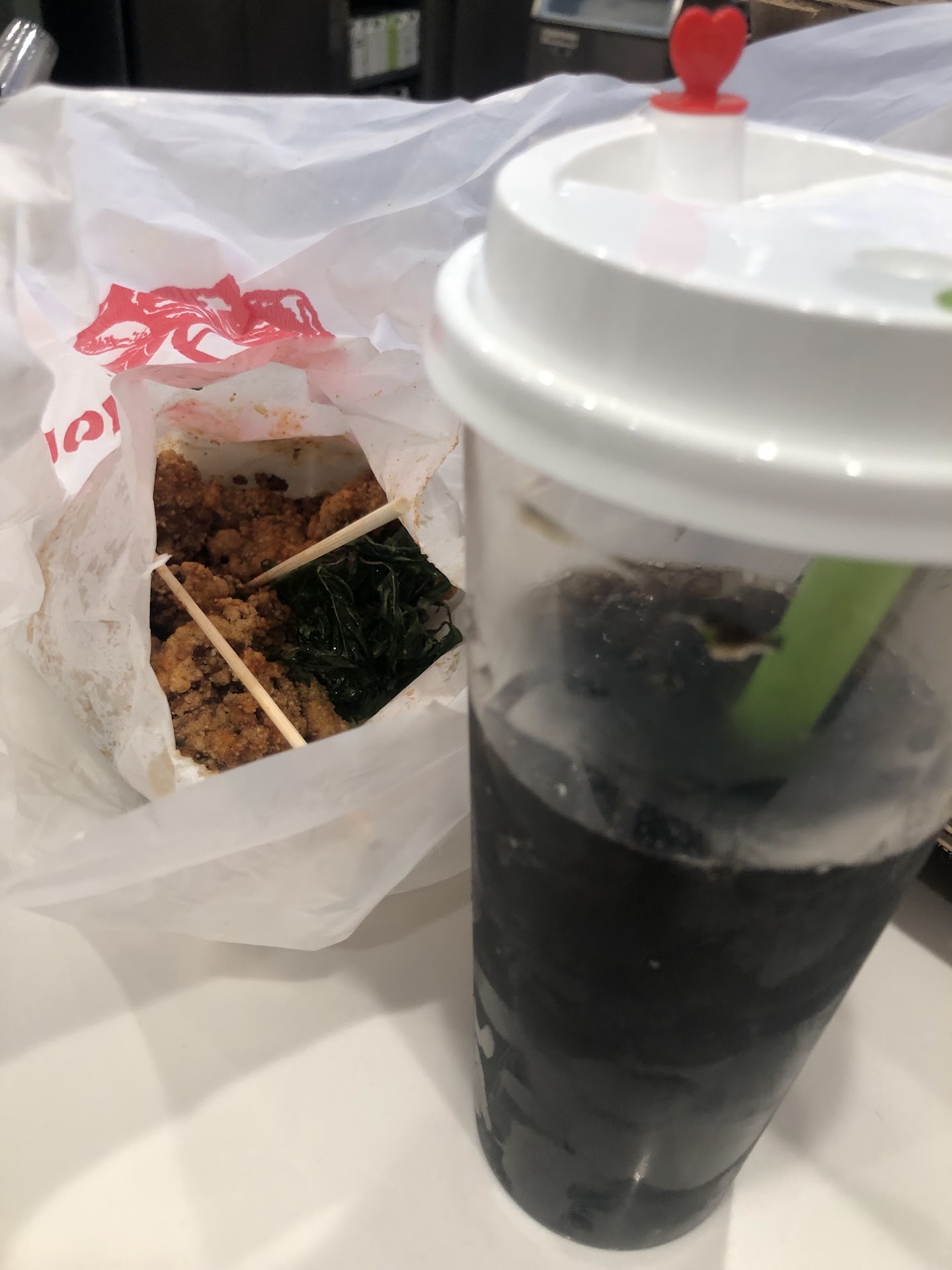 The lychee milk tea and white almond milk tea always hit the spot for me. They use finely crushed ice, which I find more pleasant than giant ice cubes because you don't lose out on the amount of drink you're getting and still get a cold drink. Their popcorn chicken is also the best I've had from a boba shop. They also recently added Taiwanese pork buns to their menu and I hope they keep it!