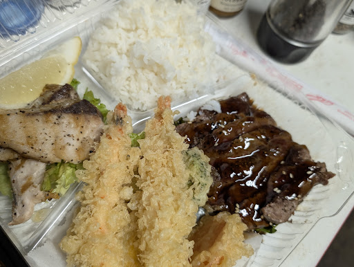 And the 3-selection dinner box, with beef teriyaki, mixed tempura, and grilled mackerel.