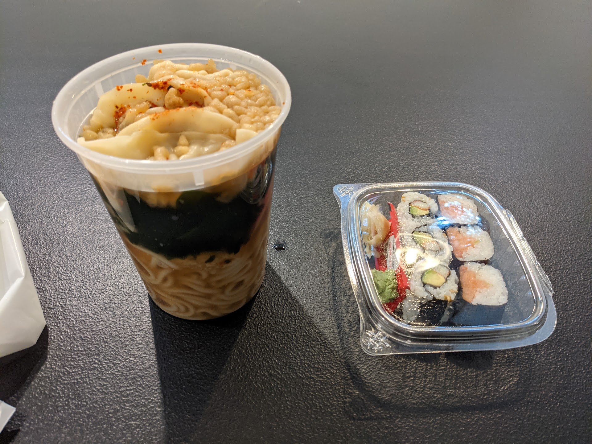 The place is to-go only, the menu choices are very simple. Udon or soba, in broth, plus 1 or 2 of seasonings/ toppings. Optional togarashi (spice). You can go for half or whole order ($5 or $9). You can also get teriyaki chicken over rice (optional brown rice) which comes with a wedge of orange and a little bit of salad. There's also some sushi in the fridge, and bottled soft drinks.