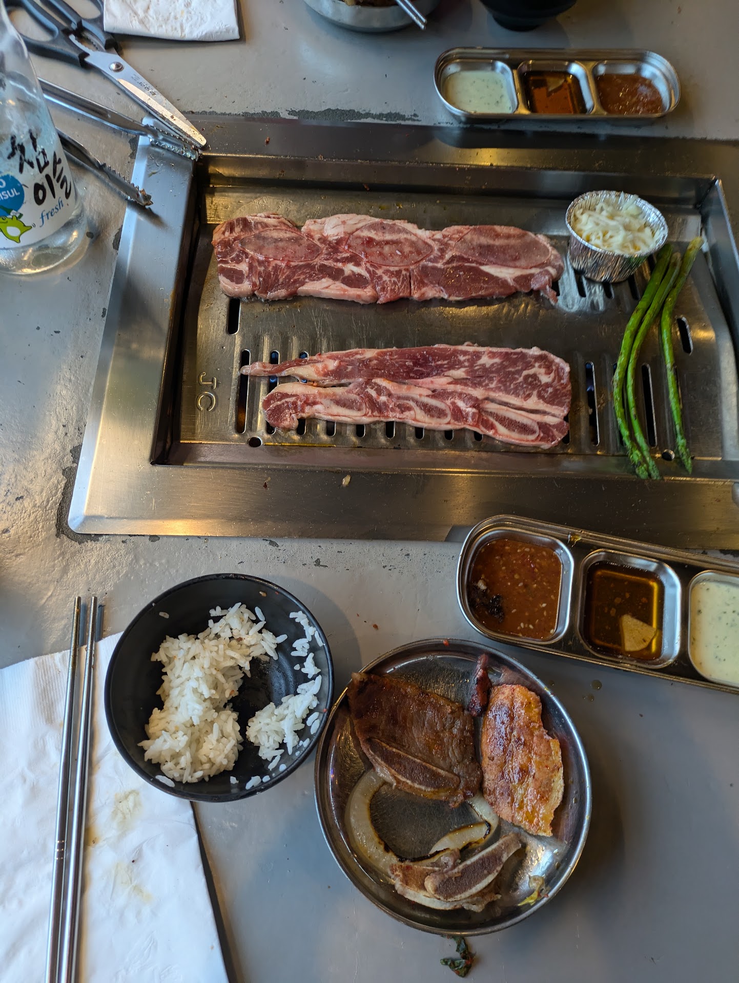 Ā Ā Ā Read moreWent for lunch on a Saturday and there was only one other table besides us when we went at noon. Over time more people came and there were about 5 or 6 tables when we left. One waitress (Lily) had to take care of all tables by herself but she still managed to change the grill plate pretty frequently and regularly check in to make sure everything was good for us. Huge shoutout to Lily for a great experienceš„³ The marinated selections were all really tasty, our favorite was the marinated beef short ribsš¤¤The ready to eat options and side orders were all pretty good too, and the ice cream at the end was definitely a perfect endingšØ They have ventilation systems on top of every grill, it doesnāt completely eliminate all the grease and smell, but it does make a significant differencešš» Pro tip - if you donāt want to smell like bbq after your meal, you can get those single-use shower caps (We got some from Target, but Iām sure you can get them at other places too) and wear them while youāre there. We did that and Iām pretty sure everyone else in the restaurant looked at us for more than oncešbut we managed to not smell like bbq after all...