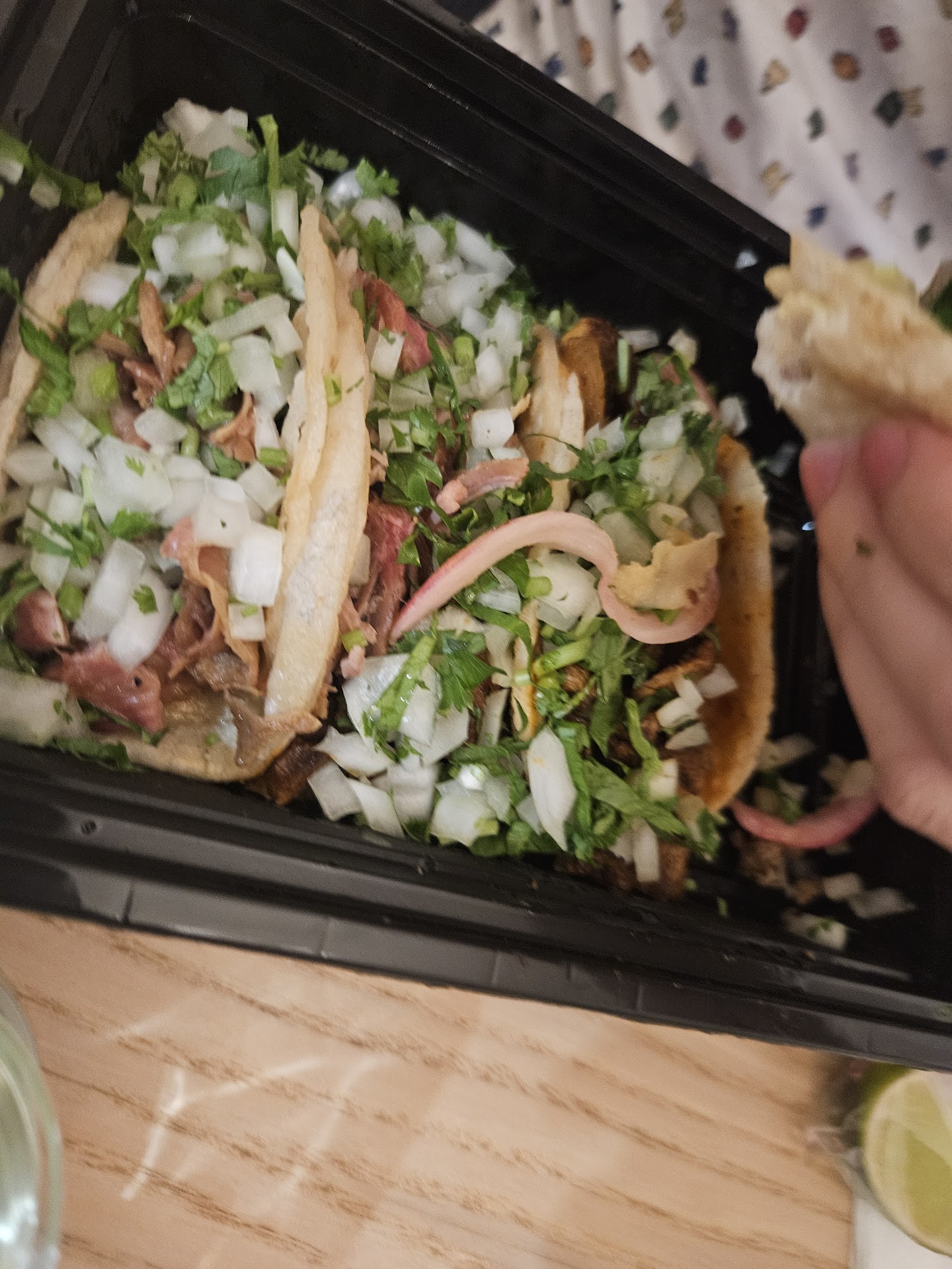 I stopped by this taco truck after my usual taco stand wasn’t open—and I’m glad I gave it a try. I ordered the buche, carnitas, pastor, and cabeza tacos. The carnitas and cabeza were the best—juicy, flavorful, and cooked just right.