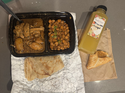 I had to try the chicken curry with roti for my first visit. The to go portion was massive and came with lots of tender chicken pieces, good chunks of soft potato, and a thick gravy. (As I told my mom over the phone: “plenty chicken, nuff aloo, thick thick gravy” 😅) It was so flavorful and paired perfectly with the roti. It also came with a side of channa (sautéed garbanzo beans) which were seasoned and filling. The roti was perfect and flaky.