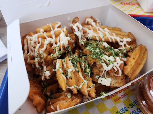The wagyu waffle fries with melted cheese curry dipping sauce were the standout, carrying most of the flavor. Despite their name, the fries contained no wagyu beef.