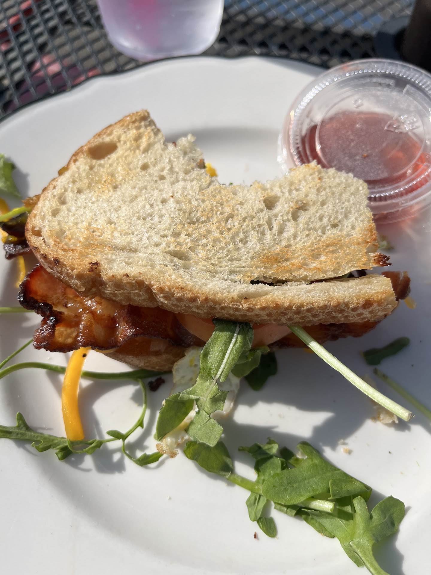 Cool jazz music, freshly made lattes, a warm breakfast sandwich and a relaxing outdoor space. My breakfast sandwich was cooked perfectly with bacon and cheese on sourdough. My cinnamon latte was made fresh and it makes a difference. About the same price as a sit down waitress breakfast, my sandwich was the right size. As a local, Iāll be back.