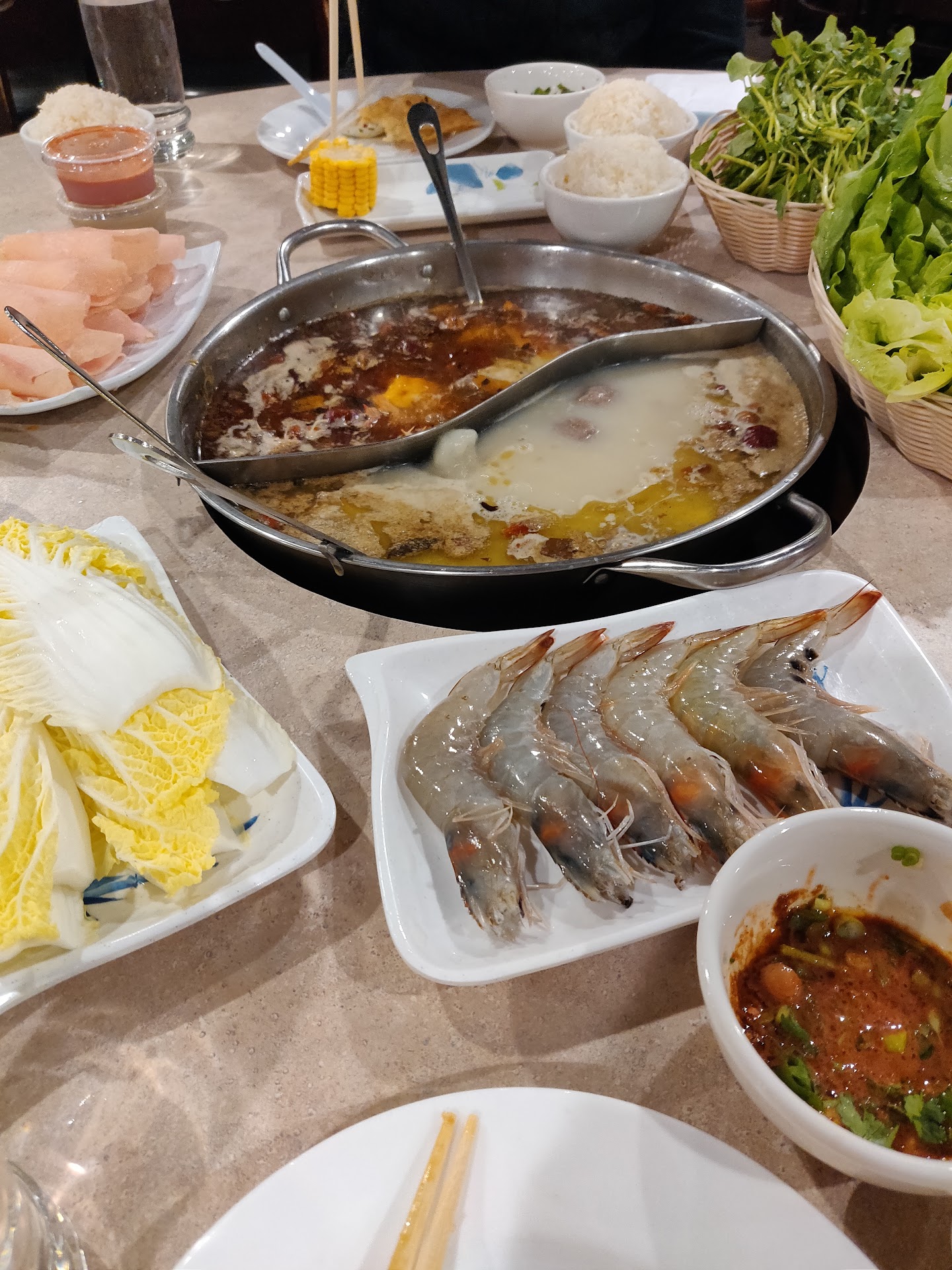 Order a few dishes to start because it's easy to over order. Stay away from the fancy stuff (i.e., abalone) and go with the common beef, lamb, shrimp, lotus roots, etc. One must try is their fresh fish; they will take a fresh fish and do most of the de-boning leaving you with a fish head and about eight big pieces of fish from the body. If you're a noodle person, go for the clear noodles as they do a good job absorbing the soup.