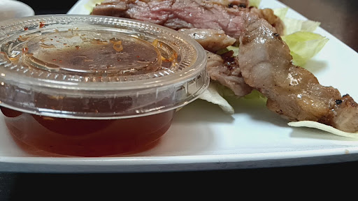 The reason I gave Red Chicken a 4 star is because of the food. The food is really good, don't get me wrong. But I believe if you were to go to another local Thai restaurant they would do a much better job. I ordered the beef set that came with your standard thai bbq beef with sauce, rice, and papaya salad. Starting off with the papaya salad, it was way too sour. I think I got the bottom of the bucket of dressing for the salad. I am used to having a much more subtle and sweeter side papaya salad, so that may be why. The beef cooked perfectly with a nice thin brown crust and a chewy red in the middle. However the ultimate thai sauce that makes the thai beef so amazing lacked flavor. It was definitely subpar.