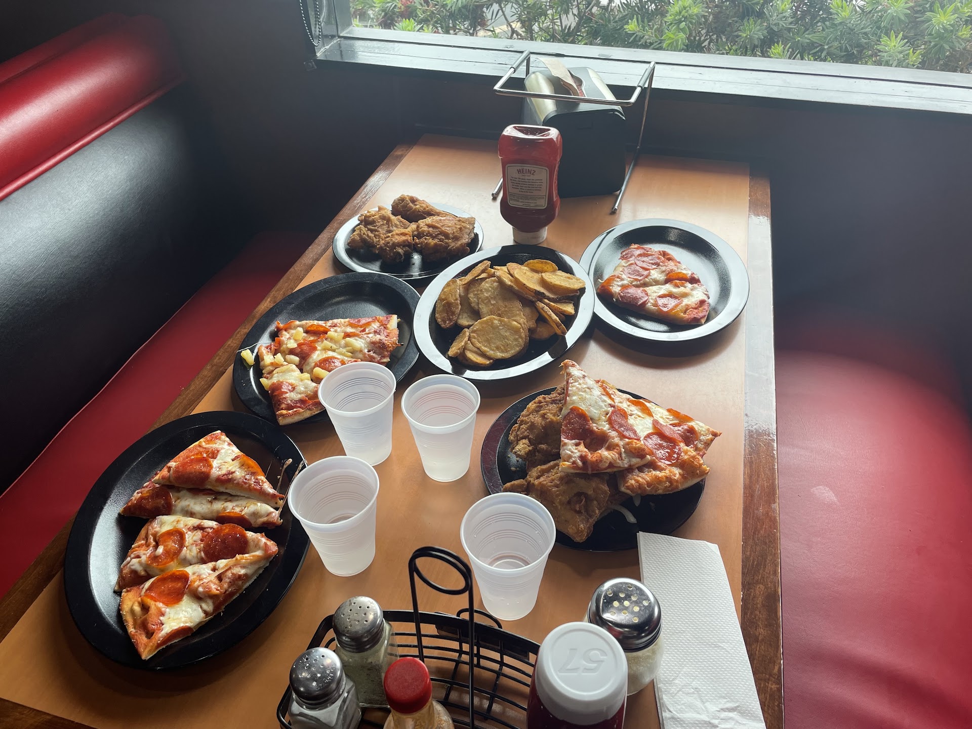 Ā Ā Ā Read moreWas craving pizza but wanted something else too. So we got the Pizza, chicken, mojo potatoes large deal. I also added the extra medium pizza for an extra $6. I was happy with the pizzas. The pizza was fresh & hot,, the crust was crunchy and tasted very good. The fried chicken was delicious as well, we were given freshly made chicken and it was still hot, moist and the skin was crunchy even after the 15 minute drive home. It's a little pricey but it is a lot of food. The mojos were fresh made too and crispy and delicious. I could have used a little salad, next time I will pick up a bag salad and serve it with this carb heavy meal. Don't get me wrong I loved it, but when you get the Bunch a Lunch buffet the have the pizza, chicken, pasta, corn, mashed potatoes & mojo potatoes plus a salad bar. That evens out the carbs. The staff were really good too. Like I said we were given fresh chicken & mojo potatoes thanks to the woman packing those items after the pizzas were done. Eat at this Shakeys...