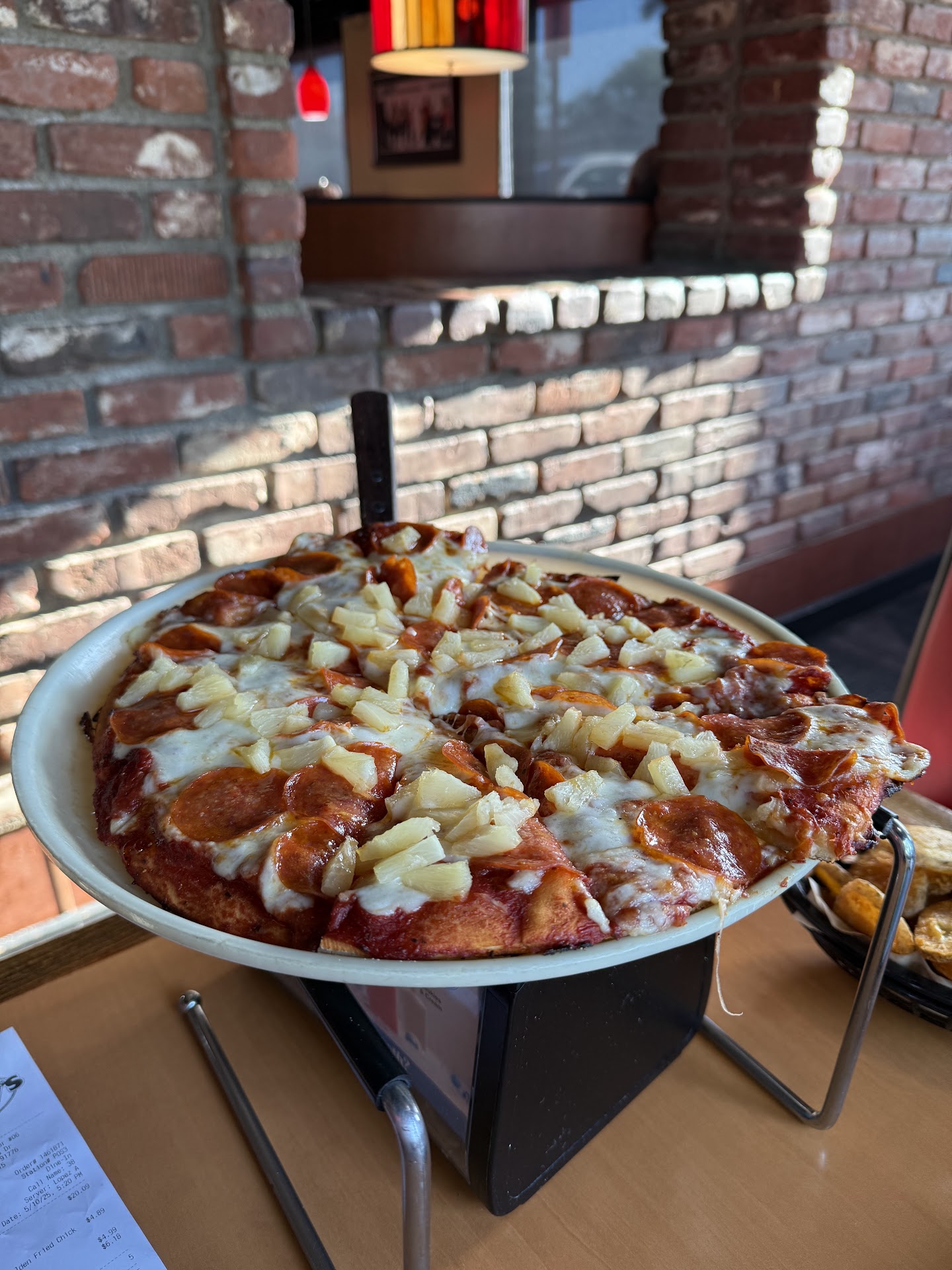 Read moreWas craving pizza but wanted something else too. So we got the Pizza, chicken, mojo potatoes large deal. I also added the extra medium pizza for an extra $6. I was happy with the pizzas. The pizza was fresh & hot,, the crust was crunchy and tasted very good. The fried chicken was delicious as well, we were given freshly made chicken and it was still hot, moist and the skin was crunchy even after the 15 minute drive home. It's a little pricey but it is a lot of food. The mojos were fresh made too and crispy and delicious. I could have used a little salad, next time I will pick up a bag salad and serve it with this carb heavy meal. Don't get me wrong I loved it, but when you get the Bunch a Lunch buffet the have the pizza, chicken, pasta, corn, mashed potatoes & mojo potatoes plus a salad bar. That evens out the carbs. The staff were really good too. Like I said we were given fresh chicken & mojo potatoes thanks to the woman packing those items after the pizzas were done. Eat at this Shakeys...