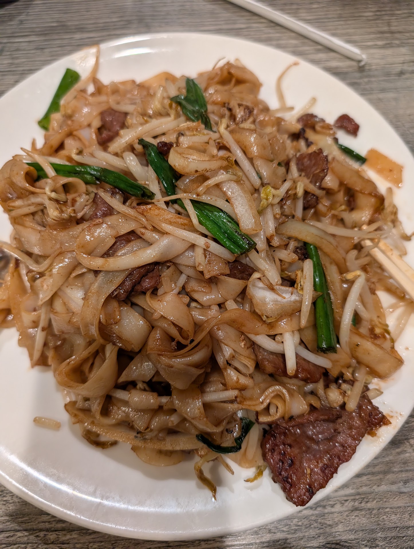 A time capsule from the 2010s Chinese cafe. Smoking and non-smoking, open late, open generous parking, old school coffee/tea prep in the dining area. Pros and cons associated with all that. Smokes spill inside from the patio, thick tea you could taste from just the air. Service during my late visit was good. The food was split. The acid test of a dry fried beef rice noodle was pretty good while the other prep made Hainan chicken was not so much. It was late so I didn't get any drinks and that was a good decision since soon I was swimming in smoke from the outside. If you could do order tea or something because the tap water should have its brand named because there was a distinct taste to it and it wasn't something I would purposely order. Parking lot is big and shared what appeared to be a member only pool hall. In the worst case park on San Gabriel. All the waiters are bilingual speak Chinese. This shop has steaks, fried rice, noodle soup, all the usual hallmarks of a Chinese cafe from the golden cafe era. The posters, signs, some areas could use a refresher. Prices $15 and up. Didn't see any lunch specials but I visited when most other shops were about to close. If you don't like smoke, pick a seat away...