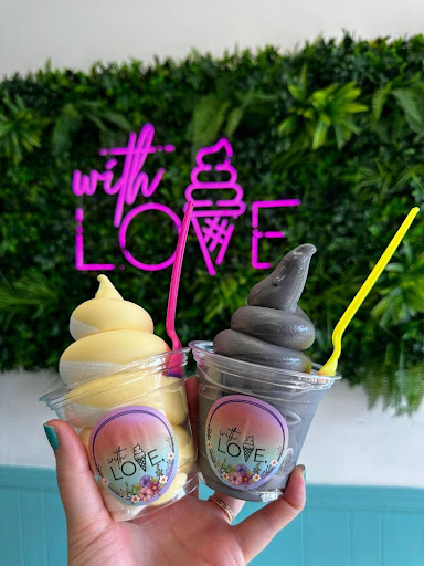 Read moreIt's a small place that serves a variety of ice cream and cold drinks. It's very similar to Somi Somi in that you choose your ice cream and your filling lined inside the Taiyaki (fish shaped cone). This place differs in that they have more options in terms of toppings (free and unlimited in that you serve yourself) and they also have shakes, slushies, smoothies, and Sso Tteok (savory sausage and rice cake). I ordered the Pineapple Dole Whip and it was good but nothing really different or special. I also ordered the Sso Tteok inside the Taiyaki and it was also okay. Sso Tteok is a Korean street food that is typically served on a stick, like a kabob, alternating between rice cake and sausage with a slightly sweet and spicy sauce. With Love put a spin to it in that they serve it in the Taiyaki. The flavors were good, but I didn't think it worked with the Taiyaki in that there was only one small piece of rice cake and one small halved piece of sausage. The filling was lacking and it was there was too much breading for the lack of filling and sauce. Typically the rice cake balances out the saltiness of the sausage but put inside the bready Taiyaki, it just didn't have enough flavor. One nice thing about this place is that they have a section with toppings that you can help yourself to. The service was really good as well. Overall, I would go back again if I was in the neighborhood but I wouldn't go out of my way...