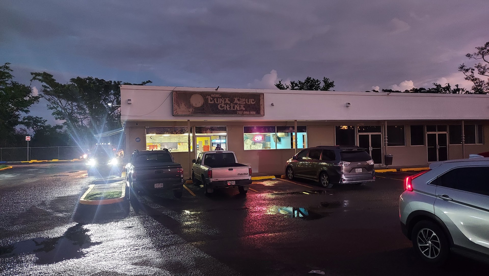 Luna Azul or Blue Moon. So sorry, but my experience with the amount of food for the money was not as expected; more like Lunar Eclipse. Friday night, came here because my usual place was closed due to staff shortage. This Luna Azul was lower on the Google Maps search list than other places further away. Now it makes sense. Couldn't see the place from the road because the signs are unlit, old, dirty, dingy and it's dark with no lighting in the parking lot, either. Feels unsafe. Strike one. Staff was very attentive, friendly, enthusiastic, and nice. They seem to enjoy working there. All smiles, which made me feel welcome. Ball one. Cashier said someone stole the outdoor light bulbs from the entrance a week ago. God, They've had an entire week to screw in a few bulbs, let alone light up their sign. Posted a picture taken days later at dusk--still no bulbs. But once inside, updated prices on the commercial sign indoors are all posted with pieces of paper written in magic marker. Foam plates and clamshells are all stacked in a pile on the side counter. Ordered the 40-dollar family combo. Yes, got the 1/2 gallon of rice with 8 pieces of chicken--can get more chicken than that in a bucket with all kinds of side orders and a 2-liter soda at KFC for 24-something dollars. How far down goes the rabbit hole go? The clamshell rang hollow; was only half full of fries--about the same as a large order of fries for one person at Burger King. Strike two. Got this itty-bitty 32-oz Pepsi--Jesus, the usual 2-liter is only around $1 wholesale. Also got a tiny cup of boneless ribs. The cup of spare ribs is the size for a soup appetizer for 1 person. Strike three. The bag felt way too light for 40-dollars worth of Chinese takeout with mostly rice. Even Dynasty in Mayagüez has an all-you-can-eat buffet for less than 20 dollars. Enough people seem to like the this Luna Azul, so it seems useless to complain. Left without saying a word--doing them the favor of not coming back. Ugh! Can get way more value for a lot less than the forty dollars at the place downtown in front of the Inter-American University where they offer a big box chock full of the best fries ever, a big heavy box of boneless ribs, and big box of chicken with a quart of rice--can feel the value at the place downtown in the weight of the bag on the way home with less rice and lots more of the...