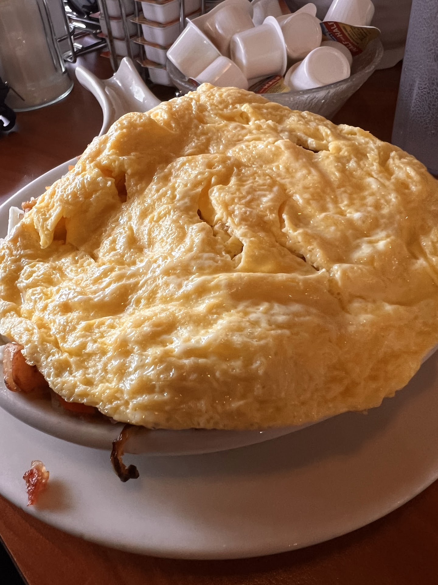 That being said, the food at this establishment was delicious, with an extensive selection of omelettes, pancakes, and other breakfast favorites. Our server was friendly and attentive, even in the midst of the restaurant's hectic atmosphere. The quality of the food and the majority of the service were commendable.