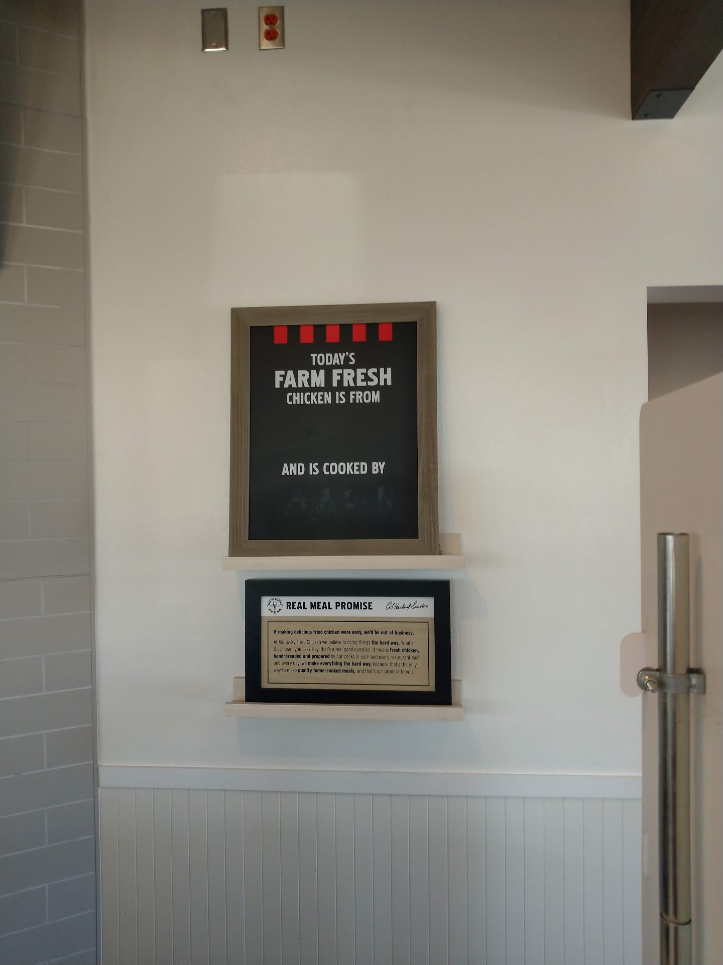 Read moreOrdered 4 items. Asked the cashier to confirm the order 3 separate times, and he did not repeat the order to me, just told me it was all there. 25 minutes later I get my order. One item was incredibly overcooked (kids corn dog order for my daughter) and the main sandwich I ordered for myself was entirely missing. Also, as the picture I included shows, the employees at this location don't even take the time to write out this corporate board (which is supposed to be updated every shift). Long line, ridiculous wait time for fast food, and poor, unprofessional service from...
