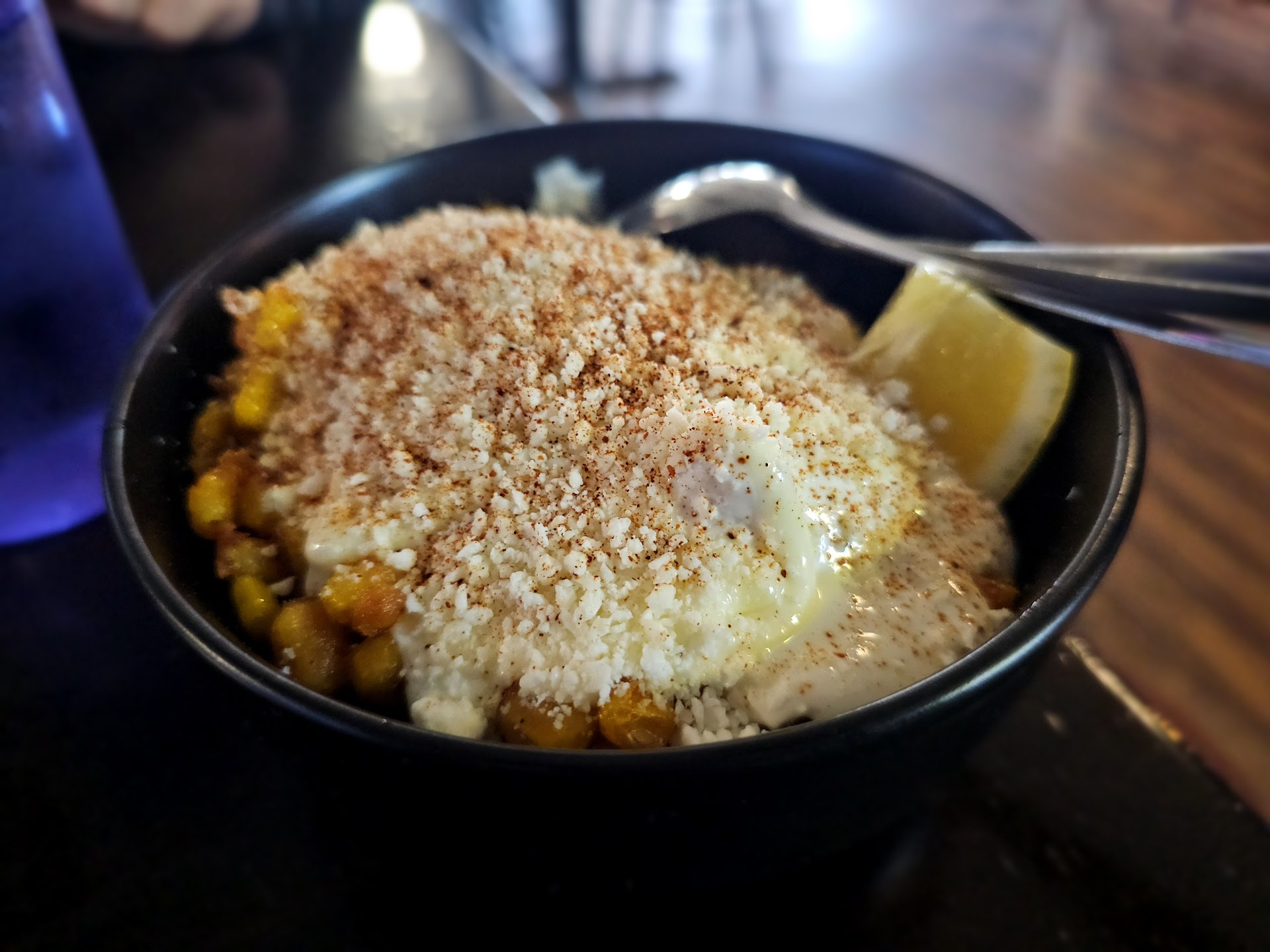 We finally tried ABVE The Basics and are so happy we did! We arrived on Saturday at noon, and luckily, the bar was basically empty. I think there were 1-2 people at the bar, and that was it. It's definitely a 'bar'. Pool tables, dart boards, tv screens, big L-shaped bar, quite spacious, actually. You walk up to the window to order your food. The menu is on the wall, and there are plenty of choices. The person at the register was very friendly and helped us with questions and accommodations. We ordered deep fried elote (DELICIOUS!). The crunch was such a fabulous change to traditional elote. It's not something we should probably eat regularly but it was very good! We had a shrimp taco, a veggie taco, and a carnitas bowl. Everything was very fresh tasting, generous in quantities, presented well, and had a ton of flavor. We were pleasantly surprised and look forward to...