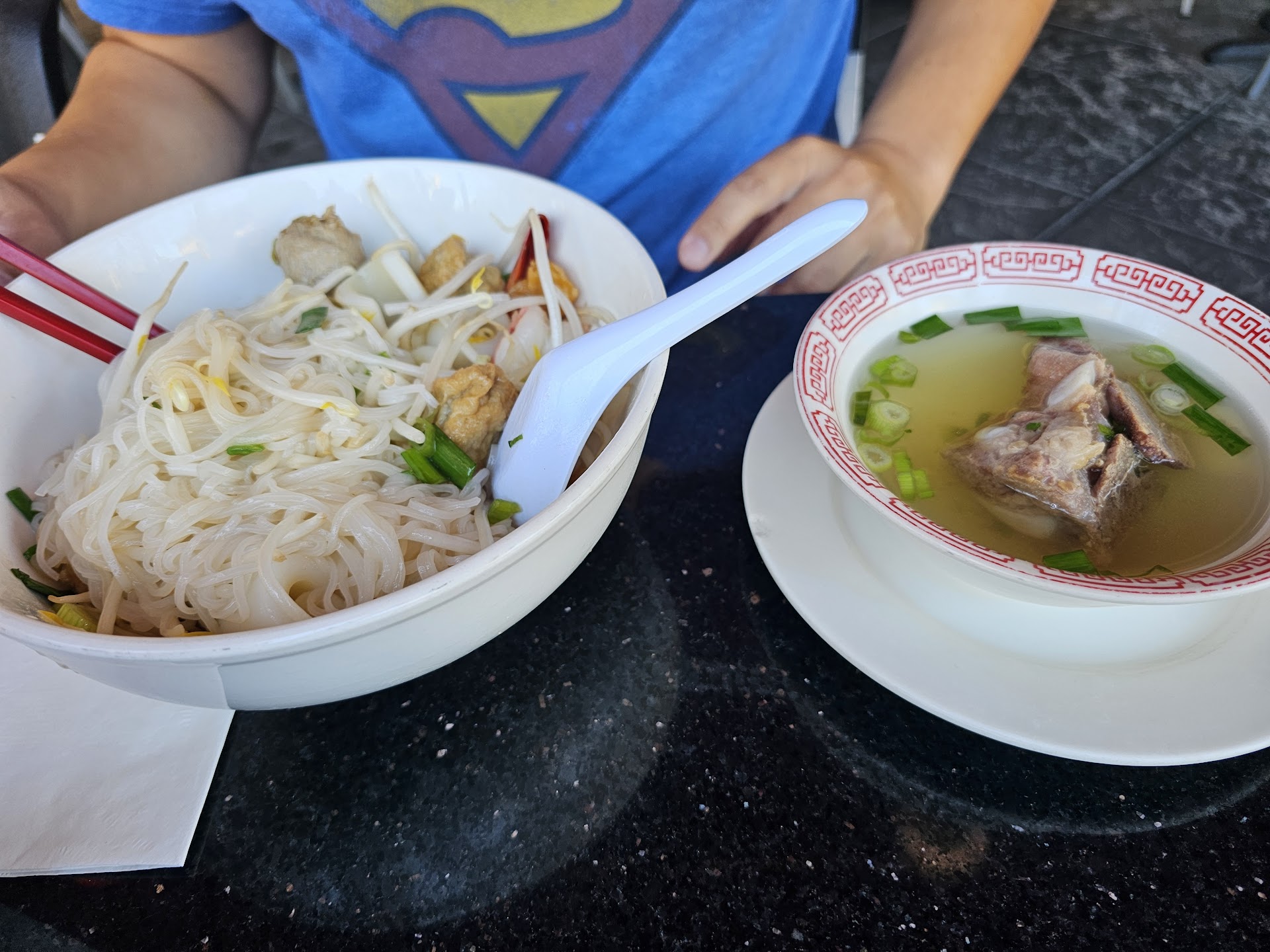 Read moreAs with any restaurant that mixes two different countries' cuisines, it feels like they are not doing an outstanding job with either. The noodles' consistency was too stiff for the egg noodles, and too soft for the rice noodles. The broth was too sweet for my taste. The menu has pictures, but the captions are not accurate, so I don't know what I'm getting if it's not something I am familiar with. The main good thing is that they serve very generous amounts...