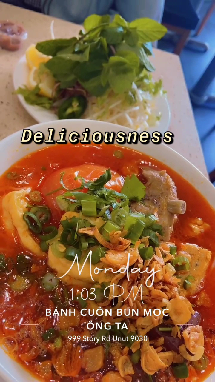 Read moreI Came to Vietnam Town to check out Bun Rieu Cua Thanh Dinh but it was closed even though it said open on the Google site. Anyways, I Noticed that this Banh Cupn Bun Moc Ong Ta is right next door with many people eating outside seemingly popular and definitely packed so I decided to meet up with my friend here for Lunch. It was my first time eating here, although I have passed by the restaurant plenty of times. The place is always super busy, can be quite the wait but I guess it was worth it since customers can walk around, lounge out, and chat while waiting for their food. I ordered a special combination Rice Roll ( Banh Cuon) and my friend ordered the popular Bun Rieu Spicy Noodle Soup. Overall we enjoyed our food. Spicy and flavorful. The portions and prices are right. The restaurant is a bit small but it great that they offered indoor/outdoor dining. I would like to return and try the Bun Moc, Bun Rieu, or...
