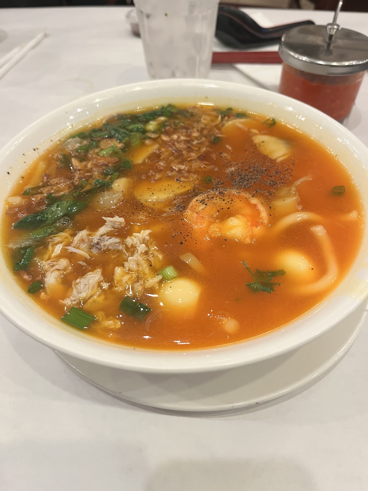 Read moreNot many places to get banh canh cua around here, well not many good ones at least. If you know of a better spot please let me know. If you come here on weekdays it’s usually not as packed and at night there’s plenty of seating. I got the banh canh cua and it came out pretty fast, keep in mind that it’s the winter season so this place hits harder because it warms up your stomach. Go light on the chili peppers if you’re not good at eating spicy. I can hold my own but after adding 2 spoons, I was hurting with every bite but at the same time loving the flavors. This place is spacious and has a big mural on the wall and a few TVs, I like it. It gives you the vn vibe. Park for this place can be a pain so you’ll have to park on the sides and...