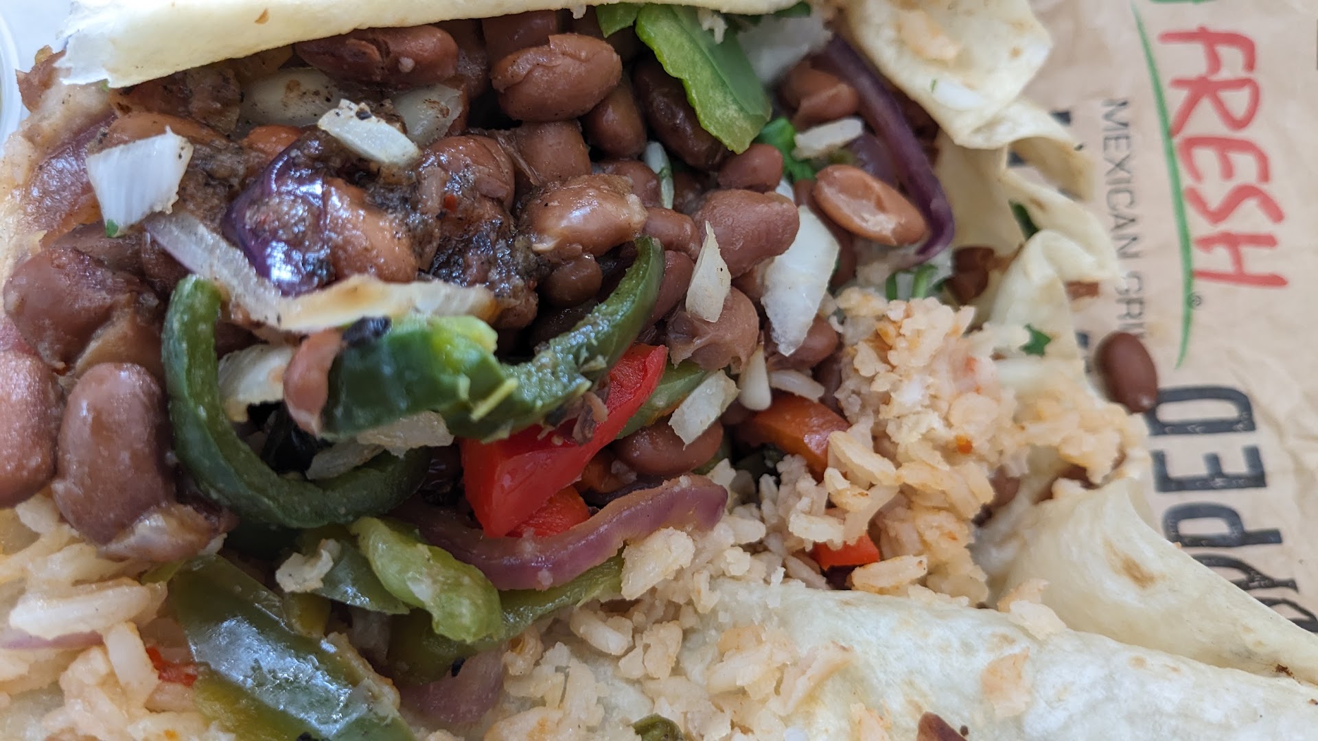 As an aside, my husband’s burrito was dripping liquid while eating it. He later realized the last 1/4 of the burrito was purely tomatoes, which is what was seeping liquid. The last 1/4 was basically inedible.