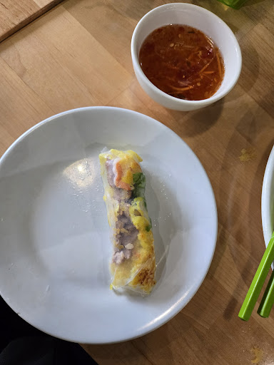 I tried the spring rolls and my goodness, it's hefty, large, and in charge. The spring rolls are very filling and quite a mouthful. They don't skip out on the meat either so each bite is not too the broom with fresh herbs and meaty goodness that you can do into this sauce. I'm not quite sure it's a peanut sauce since it was dark in color. It was probably hoisen (oyster sauce).