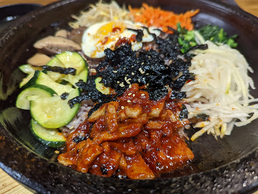 I ordered Hot stone bibimbap. The difference between normal bibimbap and hot stone bibimbap is the rice on the bottom of a bowl. Since the hot stone bowl stays quite hot for a while, and as a result, rice on the bottom gets scorched.