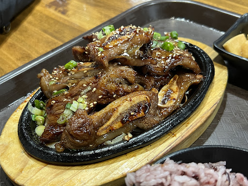 So we also got the short ribs. Flavorful but too sweet. It does come with rice and soup but the soups a little bland. Not worth thirty dollars at all.