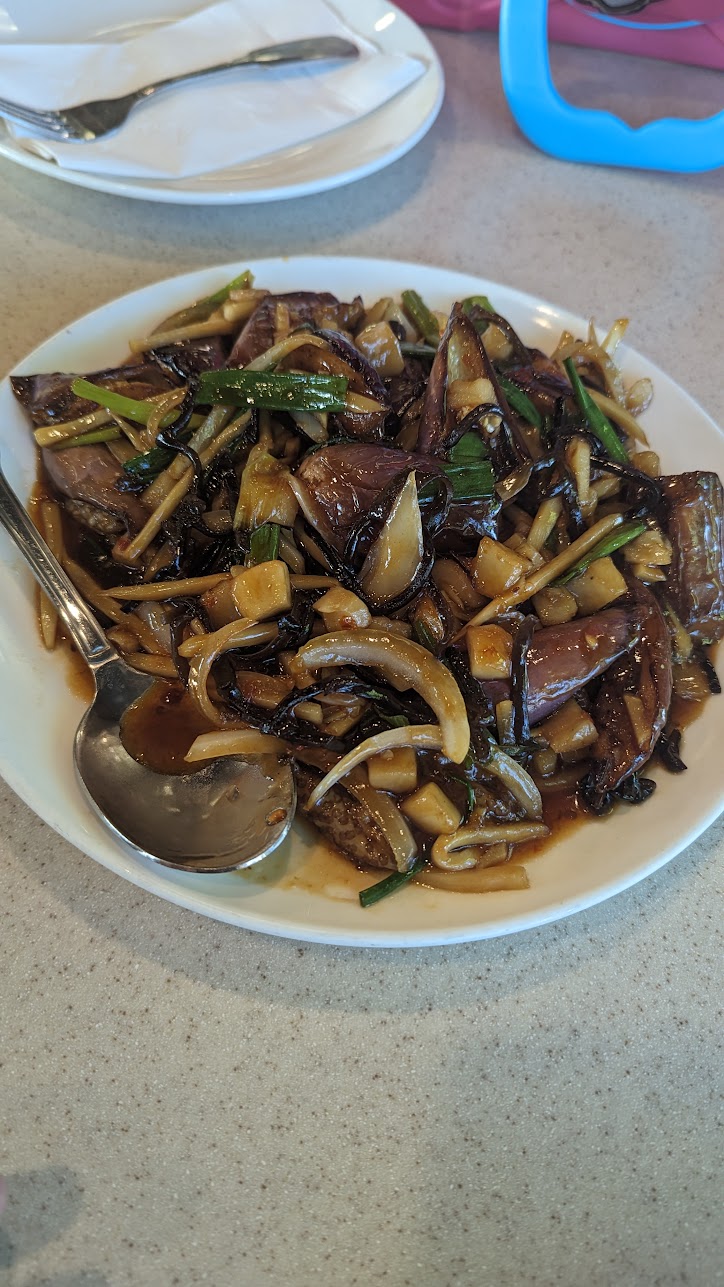 We ordered the Eggplant in garlic sauce, think of it like a hot and sour soup with eggplant and no soup, 5/5. Next thing we tried were the Peking spare ribs, as any Asian person knows, always chew slow. They fry these babies up bone in. The sauce was just the right amount of gooey sweet, 5/5. We got an order of their Juicy-pan fried pork buns. It came out a bit deflated, so the owner was kind and comped them for us. He didn't need to, not the best I've ever had, but a good example of what they should taste like, 4/5. Lastly, their pumpkin pie... It's not American Pumpkin pie by any means. Asian pumpkin filling, deep fried in a wet batter. Ate like a mochi, 4/5.