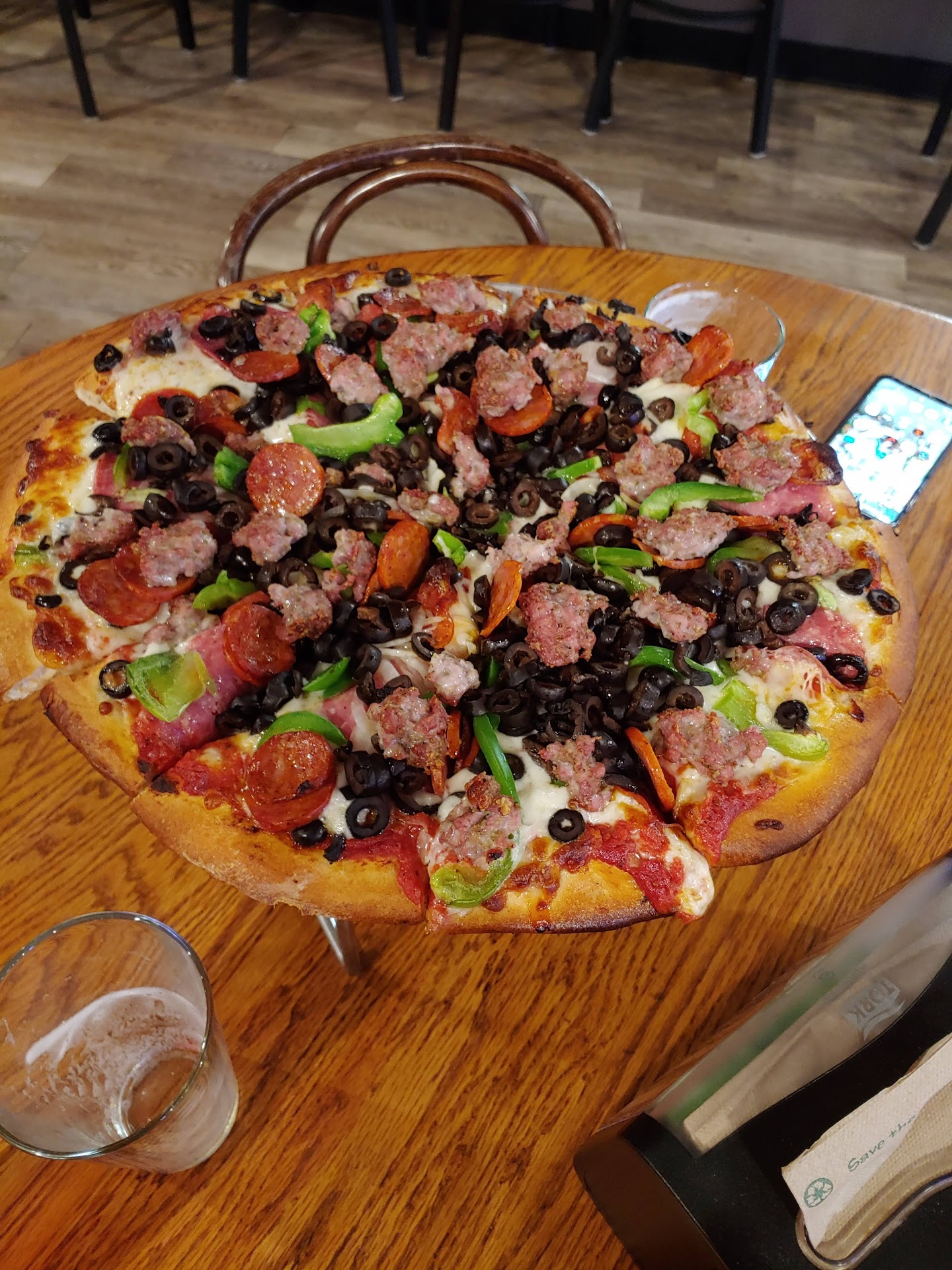 The combination pizza was absolutely amazing. The toppings are loaded on, all fresh. The dough comes out perfectly done so that all the toppings don't make the pizza sag. One of the absolute best pizzas I've ever had.