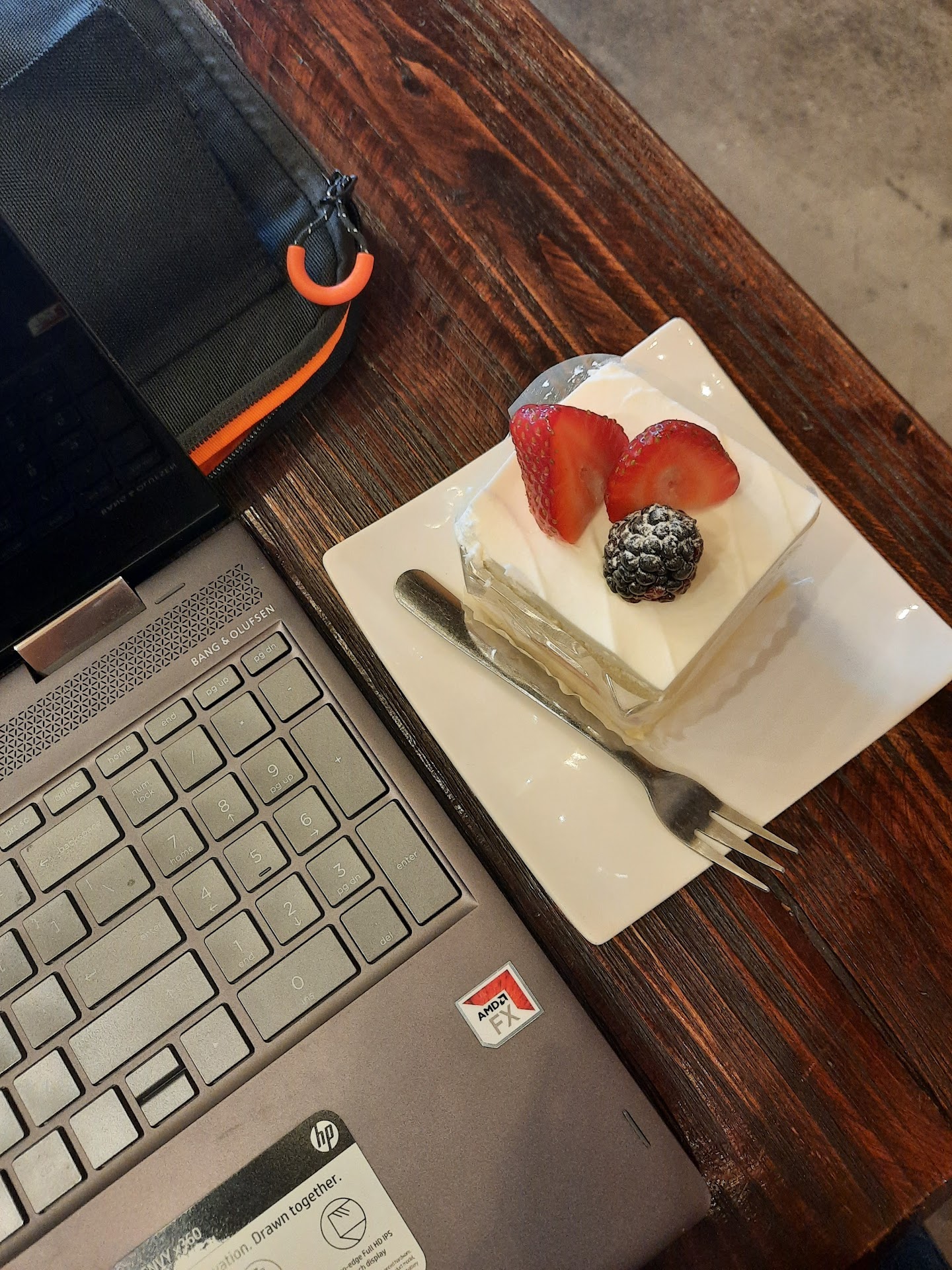 Read morePositives: First time visiting here! I love the whole environment being so vibey and chill. Loved how spacious it is as well so everyone feels like they're in their own pods. Workers are friendly and wears their masks the whole time that they are working here. The food and drink items are super good! Cakes are very tasteful. I tried their Strawberry shortcake and strawberry latte and they were excellent. They also have a variety of other cake options you could purchase if you are planning to purchase a customized birthday cake or any cake for any occasion I believe. They also have a minimal choices of savory food (they only offer deli sandwiches)