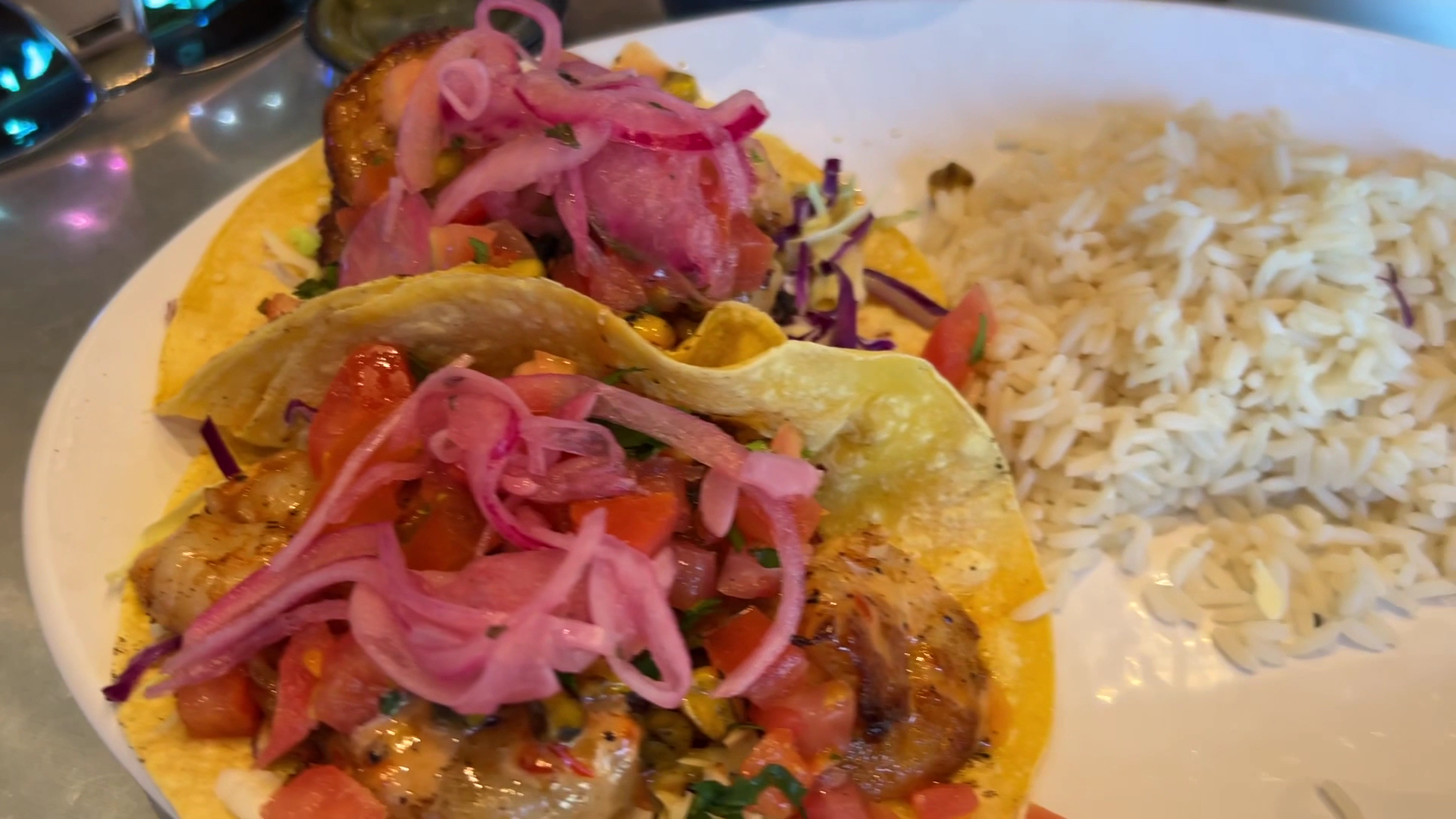 February 2023 update: Shrimp tacos still rock! This time with corn and sweet potato fries as sides.