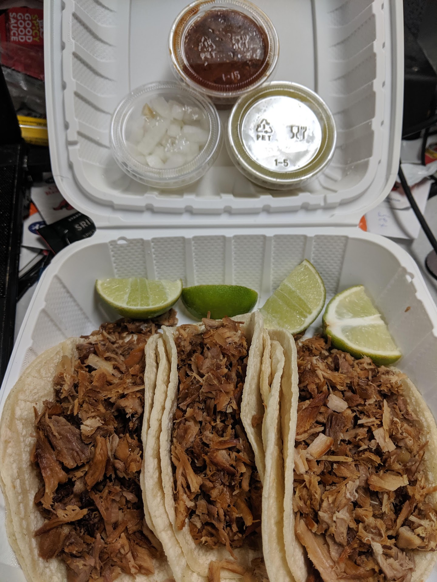 Oh baby! I need to get here more often. I come to the DMV across the street, even though there are at least two other DMVs closer to where I work and live, specifically to come to this restaurant. Awesome, awesome, AAA awesome! Just carnitas now, but still way DELISH. Plenty of meat in the Tacos, and I got the mild and hot salsas. Today is a Wed, and I'm working, but eating the Tacos from this place gives me a little slice...