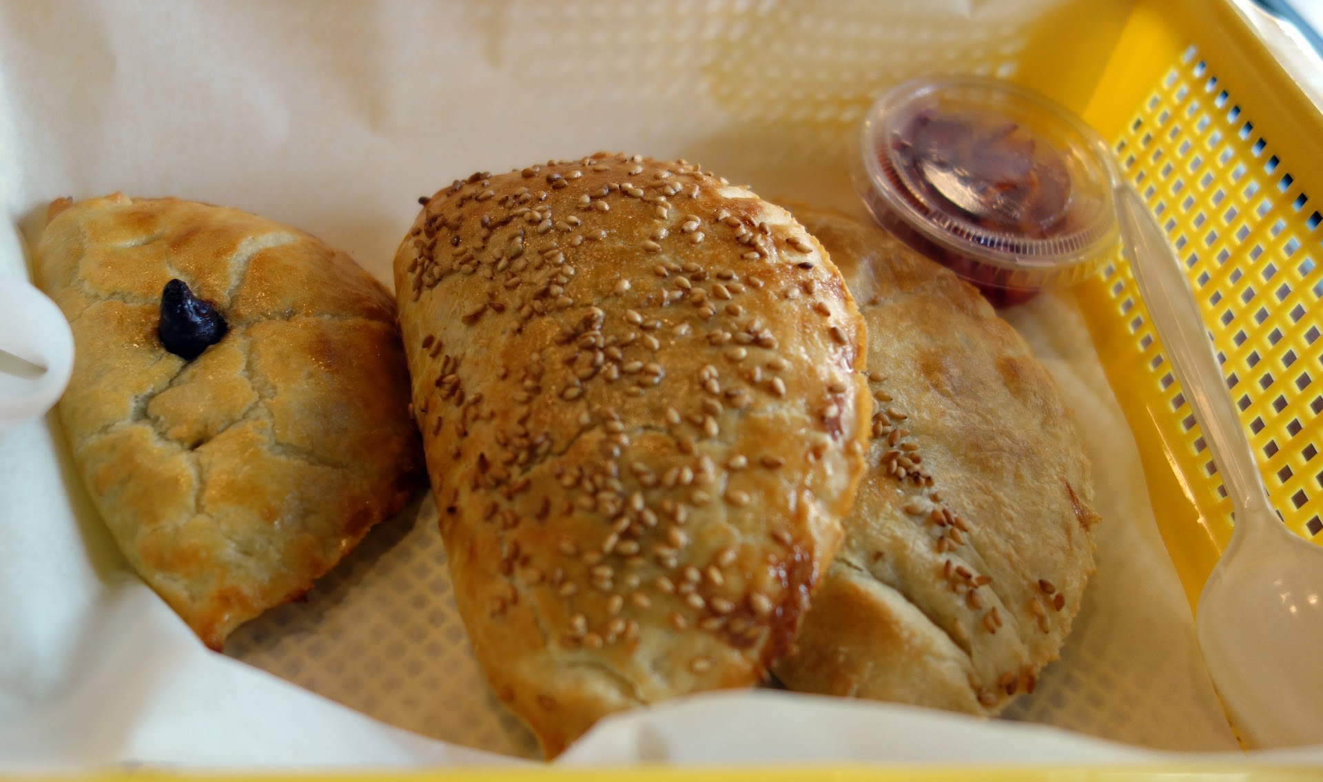 My hubby found out that the subway place closed down right across the street from the San Jose Convention Center where he sometimes work and a Mexican Empanada spot opened up. I googled it I asked him to check it out. He brought home a variety of Empanadas for me to try and I can say I loooove their crust. The crust for the veggie empanadas is different than the savory ones and the crust for the dessert tastes like a croissant pie (if that makes sense).