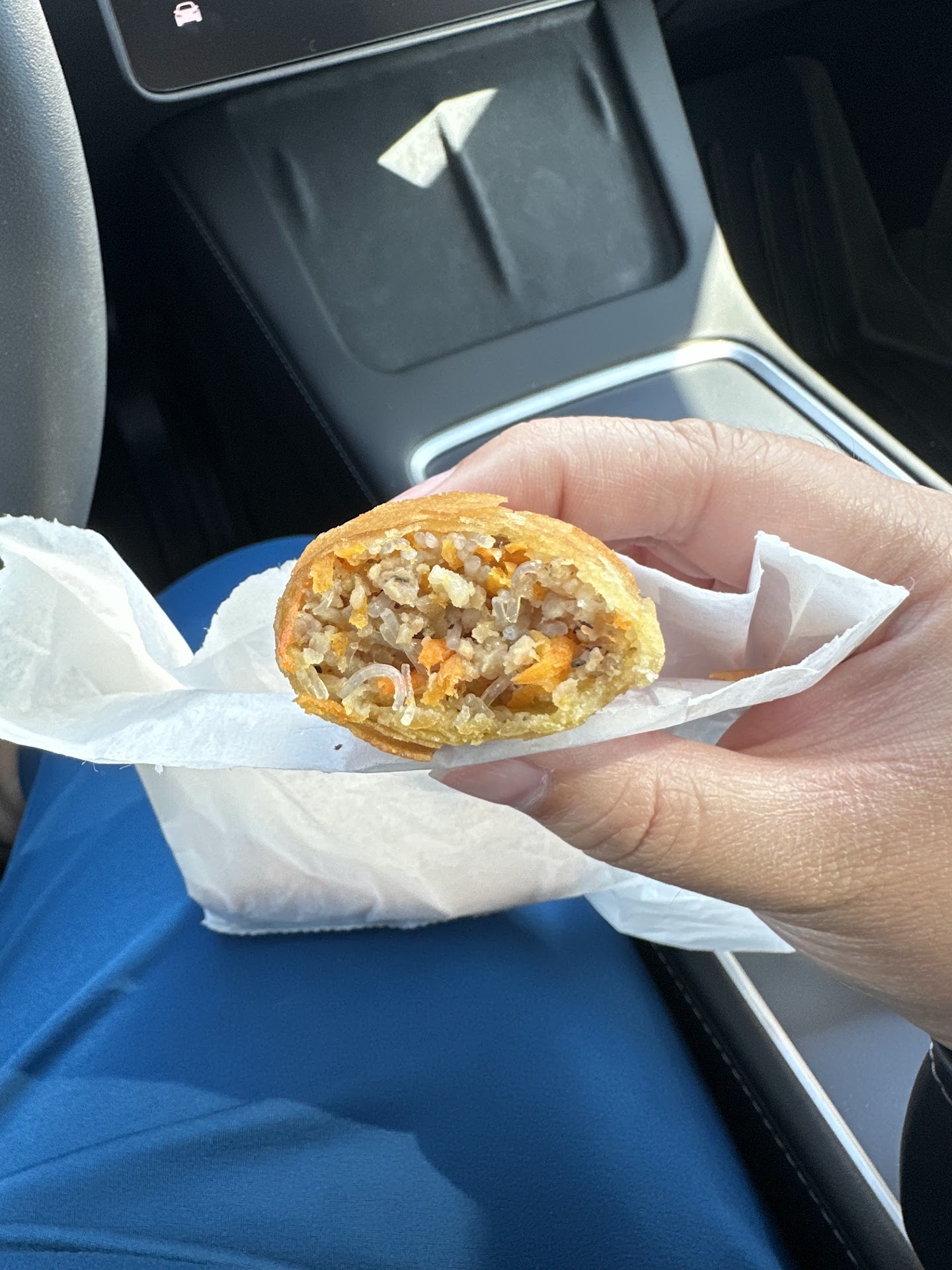 This is not a restaurant so you can't eat inside but order the egg rolls to go and enjoy in your car or your home.