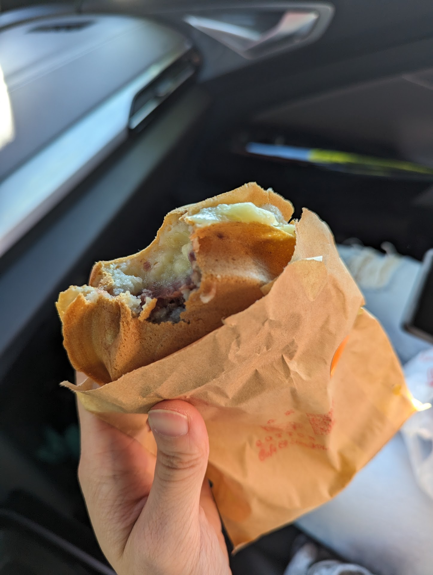This is in a ghost kitchen shared by a lot of other restaurants so don't expect anywhere to sit or anyone to serve you or anything to look at. It maximizes space efficiency with minimal decor and time efficiency letting you order ahead online and pick up at your convenience. The wheel pies offered had a lot of untraditional fillings, we went with the only classic one, red bean custard, which was not bad, a bit sweet on the sweet side. The wheel itself was a bit disappointing, it didn't have that exterior crunch and was quite soggy even though we picked the order up as soon as we received the notification. Also, the price was a bit high for how much you get and how little effort is required...
