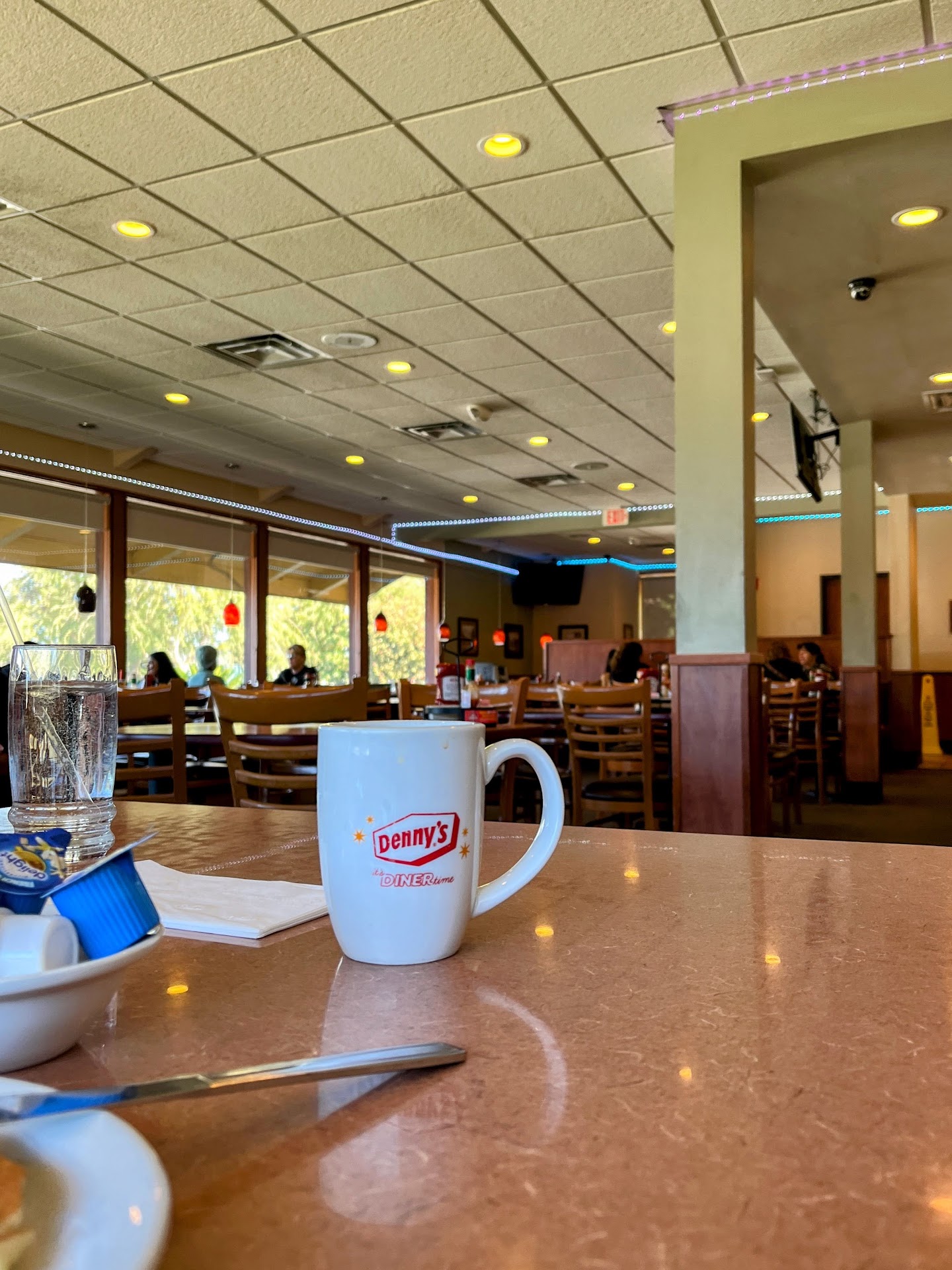 Read moreFirst I want to say. The Spicy Skillet ( Chicken,Chirizo Sausage?, Potato) was very delicious. My bf was tired of Chipotle & Panda so we decide to try Denny's. I want to say the dinner flavour is Delicious & cook did good job of cooking everyting deliciously, BUT why so small? the Dinner portions were small? I saw pictures of other things ( breakfast, Sandwich, etc) & maybe we dont know how to order but everything in pictures look big. I got the dinner for my bf...& he did eat a little before I saw him but I think the portions are kind of small for $ 19 dollars. We got the order To Go...maybe Dine in get more? And he add 2 eggs to it so maybe it was extra but only by $1. So I want to say the ToGo portion were kind of small..maybe we ordered the Cheapest Dinner I think it was only $ 16 add egg so $ 17..maybe if we order more expensive dinner like $19 or 21 dollar dinner we would have got more? ( so we have to go back to eat Chipotle or Panda which we're getting sick of it) But the Food at Dennys was Delicious. If the To Go portion were slightly bigger We'd be eating here everyday. But since the portion kinda tiny I guess we can only taste this delicious food once a week. The host guy was very nice ( I wanted to tip him but didnt since the meal ToGo was already $19 dollars my budget) When we went on Sat night around 7:20pm there was hardly any business, so I look up the review later and realized their busy hours are lunch or later during the night. I feel sorry for them they have to work midnight. I would have given 5 stars because food was so good & host was very nice but since the ToGo portion was kind of small, that is why I only gave 3 stars. I ask my bf did he eat part of it ( when I was taking care of Mom when i got home) & he said he ate very little at first so I saw majority of it &...
