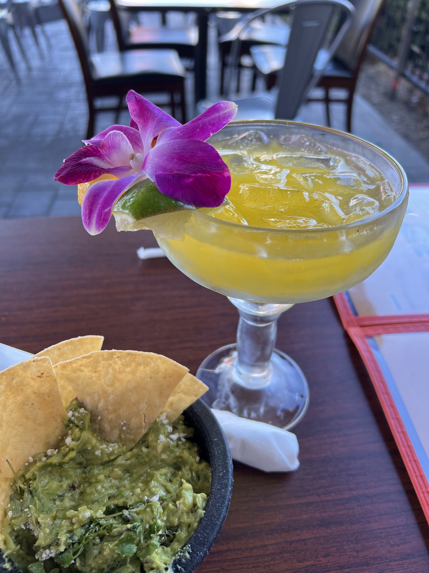 Read moreMy husband and I found this wonderful restaurant by Google search -- we were in the area and in the mood for some Margaritas! Man, were we impressed! One of the owners helped us get seated and encouraged us to try their sangria. He offered us each a sample and I was sold!! Loved both the sangria and the mango Margarita! Their drinks are both beautiful and delicious garnished with orchids, oranges, limes and cucumbers! A true party in a glass but with a splash of elegance. More like a soiree in a glass lol! I'm writing right now from one of the indoor tables where I set up my laptop to do some work while my husband teaches voice at the Avloni Music Academy. He reached weekly, and to be honest I've gotten tired of the Starbucks routine. This is a welcome change, although not a true Internet cafe. They welcome folks to come and stay a while. The drinks are delicious, the snacks are tasty and the vibe is relaxed, cheerful and welcoming. On the menu, our favorites were the wings, the Tinga tacos and the quesabirria plate. Their chips are thin and crispy, and the salsas are thick & robust with a kick but not too spicy, and they pair beautifully with their handmade guacamole. And here, presentation is everything! Definitely need to try it out if you haven't already. We instantly...