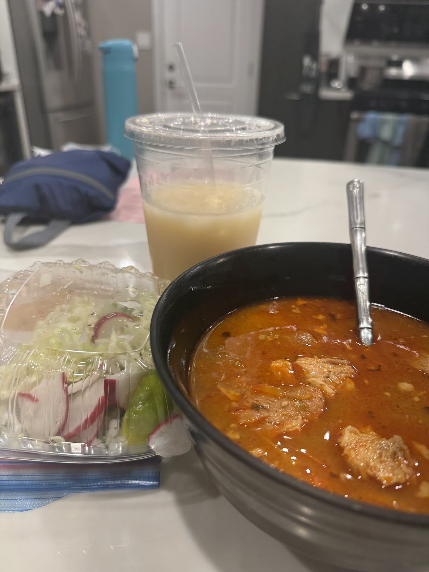 I got my pozole to-go (which is not recommended), BUT the moment the containers of pozole were placed in front of me, I was enveloped by the invigorating aroma of spices and hominy. The broth, with its vibrant red hue, was a festival of flavors—zesty, robust, and perfectly seasoned. Each spoonful awakened the senses, a delightful dance of tanginess and warmth.