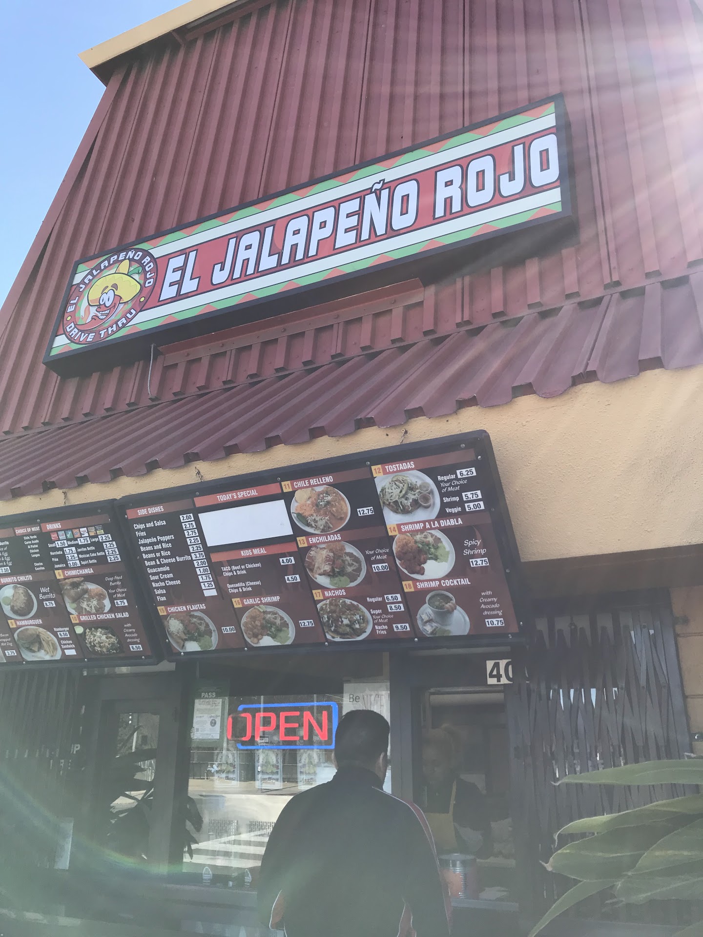 First off let me start off by saying I like the location and they had outside seating which is pretty cool because San Jose's usually hot had a little drive-thru which is pretty nice if you're in a rush very tiny little Mexican spot I'm very picky with Mexican food I've been in many places and it just not good not with that being said I got a el pastor burrito and Coke in the glass the flavors in the burrito were okay they weren't bad but they weren't great which is I guess a decent rate the red salsa was a bit salty and had that marinara taste to it a lot of places do that I don't know why the green salsa was better balanced and had a better kick than than the red salsa I asked for limes they were very dried out with no juice the cashier that I had was very friendly I couldn't see inside the building but what I could help me outside was a very clean place so assuming very clean on the inside I would definitely go back and try something else I thought it was a little weird they didn't have tacos on their menu everything except tacos oh well I gave three star because I thought the food was decent and as I was sitting there a lot of people in the drive-through so I can see other people agree with what I think if you live nearby it's perfect to ride your bike or walk up...