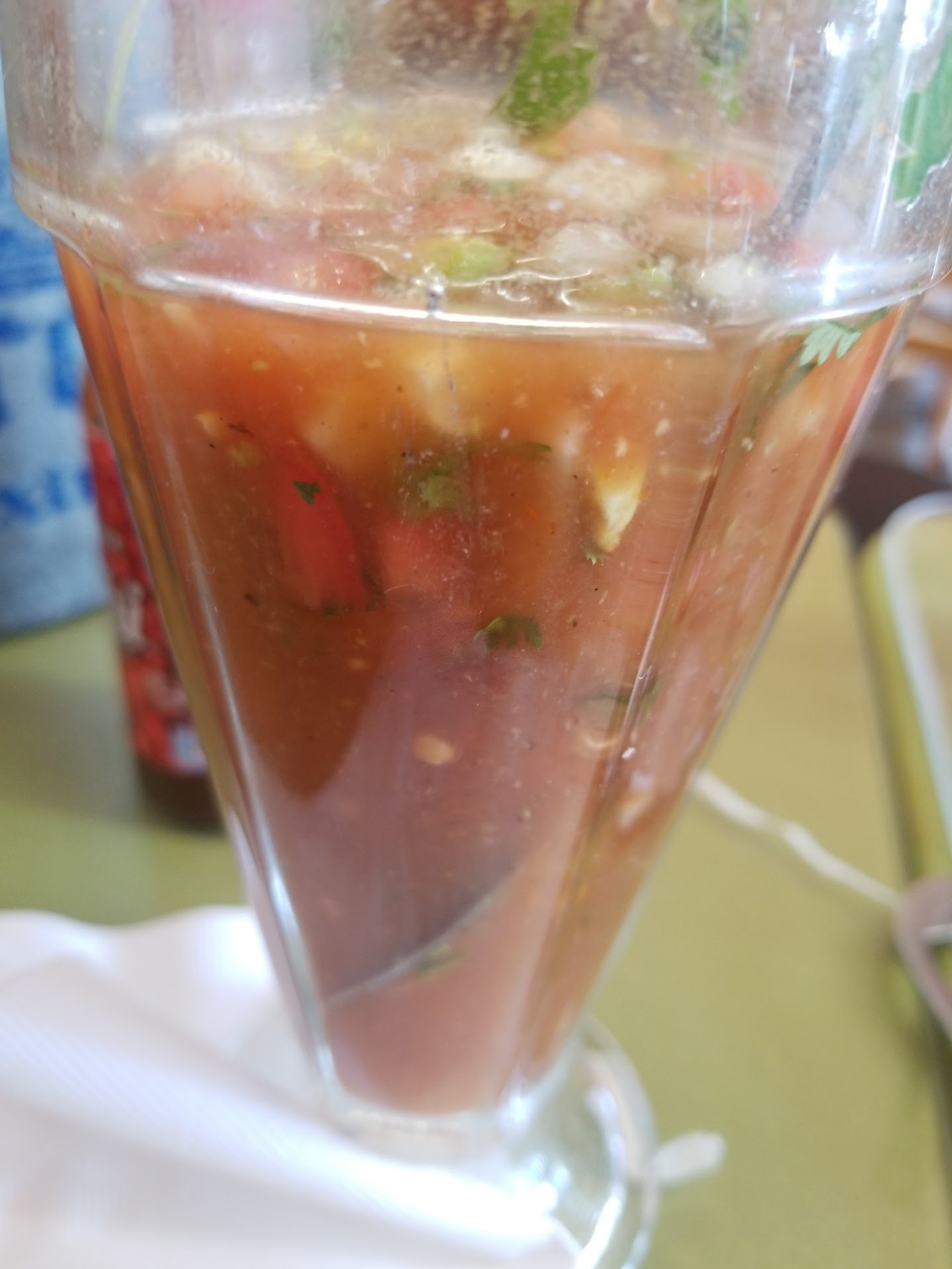Sorry, but I can make better Mexican food... *Oregano in the salsa, awful bitter after taste, with extra crispy, on the verge of burnt house made tortilla chips. *Wet Burrito, eww!! Tomato sauce for the burrito, was straight up crushed tomatoes, not seasoned, big chunks of lettuce and slices of tomatoes inside, the pureed beans just added to the disgusting look of it all together. Absolutely inedible. *Grilled Chicken Tacos, this chicken wasn't even grilled... it was boiled shredded with the same tasteless red sauce that tasted like tomato puree. *They get 1 ☆ for the shrimp Cocktail, which was a bit decent after I loaded it with hot sauce. *And another thing, when did they start charging for water?? I never asked for...