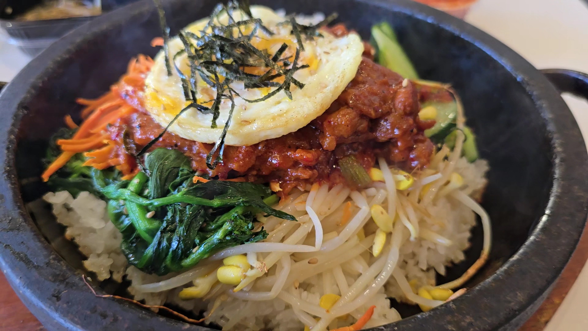 Read moreMy group dined in for lunch on a busy Sunday. Our server was great — she kept our water glasses full and checked in several times to make sure we were enjoying our meal. Vegetarians: the Mushroom Soft Tofu can be made vegan if you decline the egg; the tray of banchan that comes with the entree included rice (choice of white or purple), japchae, fishcakes, kimchi, seasoned bean sprouts, and toasted seaweed sheets.