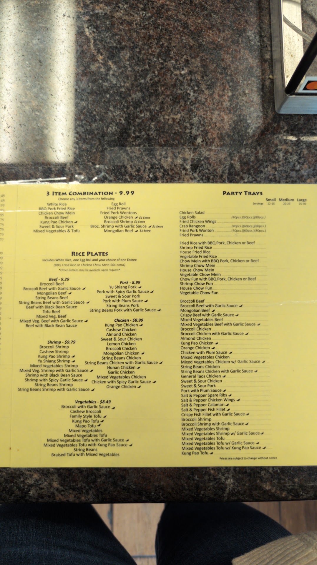 Ā Ā Ā Read moreJust came from there. Itās the weekend , I get it theyāre busy , I was told 45 min...ok no problem. Went to sit down . Place got really busy lots of orders given. Their food is ridiculously good. Fresh veggies used . I order the Hong Kong Chow Mein sooo good with the crispy noodles and gravy and one other dish simple one spare ribs. So an hour and a half later I go up , what happened to my order ? Two other customers who came in about the same time I did were asking the same question. All those people that had come in as I was sitting waiting for my order picked up their food and left....all of them !! Long story short , it appeared that they forgot or misplaced my order and those of the other two customers. So NO five star rating from me !!! It shouldnāt matter how busy you are you have to have at LEAST ONE person in the kitchen that should be accountable for knowing the sequence of the orders. What order...
