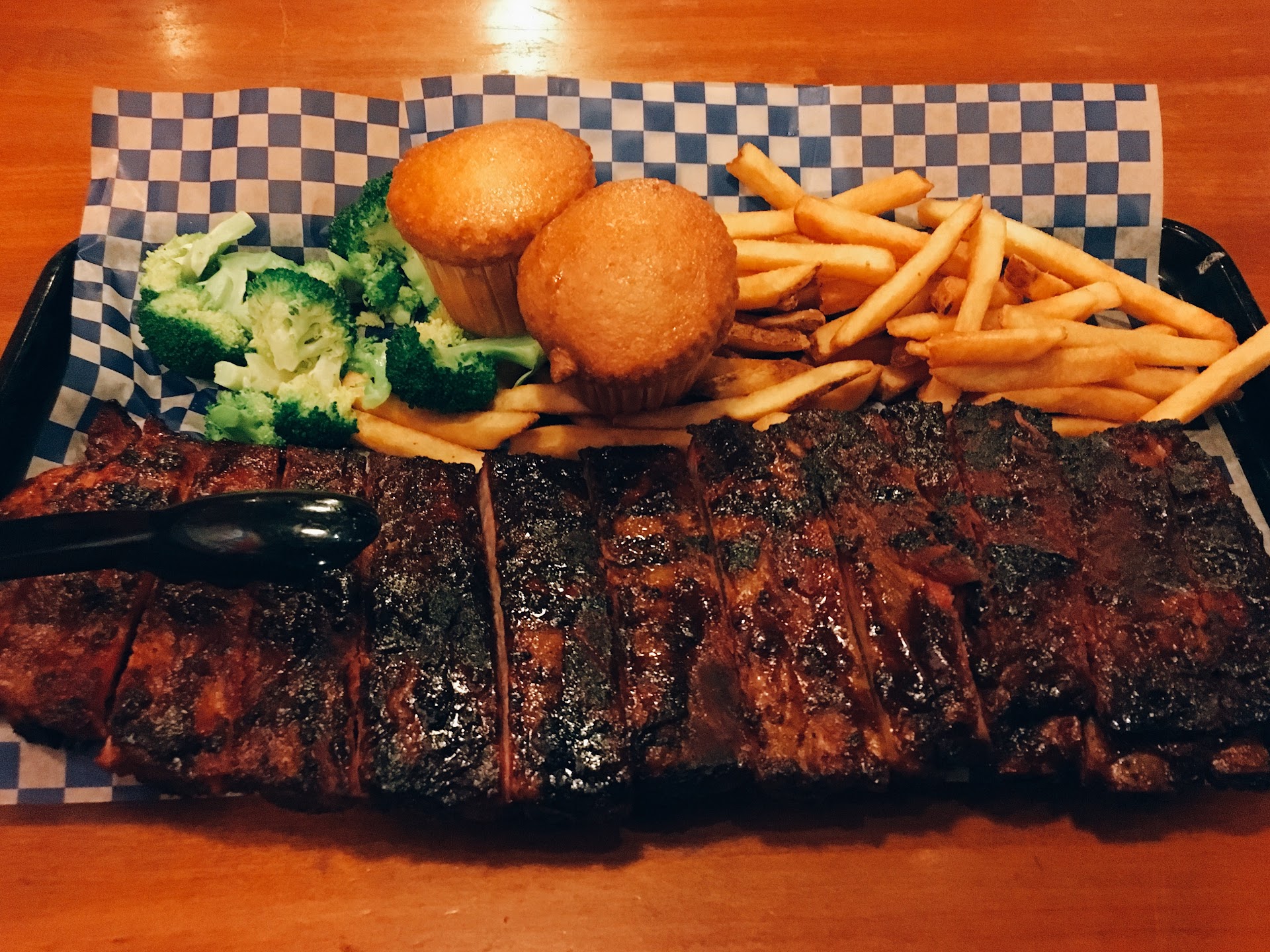 Food was decent when it used to be excellent. The last two visits the burnt ends have been chewy and not melt in your mouth tender like they used to be. The ribs were OK but not the quality they used to be. When a rib joint can't get ribs right something is seriously wrong.