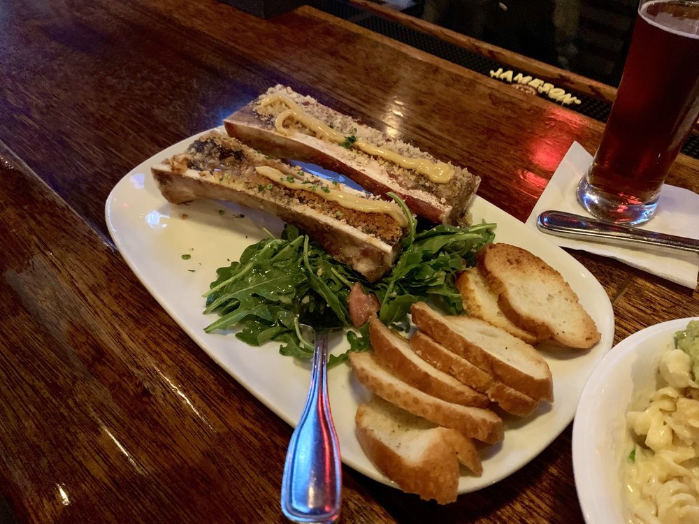 Roasted bone marrow. 4 large ones. Excellent appetizer. You know this is crazy to say. But I'm not kidding when I say it. Best roasted bone marrow I've ever had in the US. Without question. And that's saying a lot! If you like a good roasted bone marrow you cannot go wrong with this place. HIGHLY recommend it.