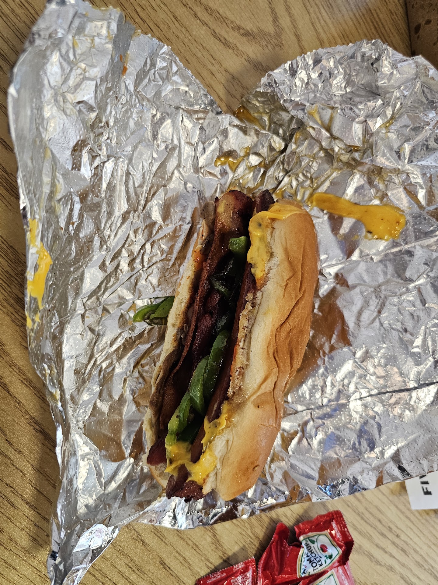 Read moreIt honestly takes skill to be this poor of a location. I was a supervisor at a five guys for 2 years, the standards of this location are awful. In almost 3 years of going to this location, not one time has my order ever been correct. Somehow, specifically, no matter who is working, they forget BBQ sauce every single time. In addition to the BBQ, my fries are almost never made well done when asked. This particular time, not only did they charge me $2 for extra bacon I didn't ask for, but it took 22 minutes for my burger and fries to come out. It seems the fries were messed up, because my burger was cold by the time the fries came out and I had to seemingly remind them of my order. I took it to go, only to come home to it missing BBQ (as always) and not well-done fries as asked. This location needs to work on it's quality control, as I will be driving all the way to Almaden from now on just to have a decent five...