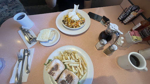 The atmosphere is warm and cozy just like the cups of coffee and coco they bring to your table. The staff is kind and the customers are lively and vibrant. Typically a family gathering which is fine by me, hearing little kids squeal and babble on in their own little language is a welcome sight on early mornings and cold afternoons. The food is brought out fast and the ketchup bottles have a smiley face on the back to match my own. I truly do enjoy the staff, especially when I see a familiar face who is always working here. An extra ten dollar tip to that short haired man in the vibrant tropical polo. He has always been nothing but kind and charitable, looking at everyone with a warm smile no matter if they are a hefty 400 or reserved to a wheel chair. Here, people tend to look you in the eye and share in honest, face-to-face conversation. Rather than the common game of heads up seven up with parents and teens face first in their screens. That is all well and dandy if you prefer it but, being anti social myself, sticking to writing rather than speaking, the ambience just makes you want to talk.